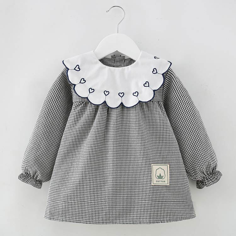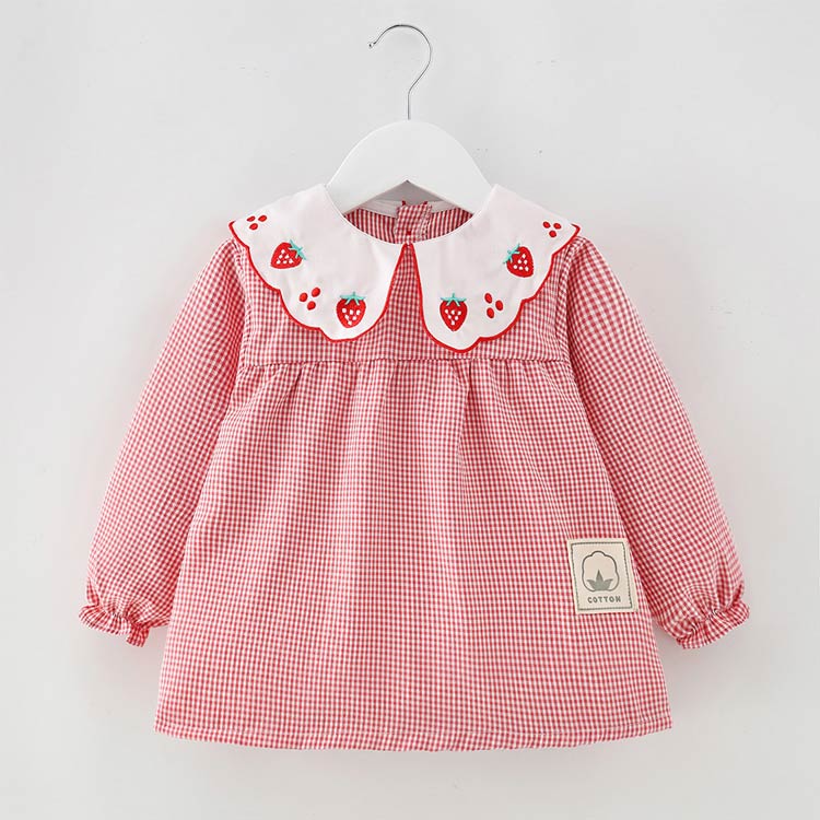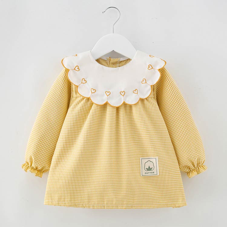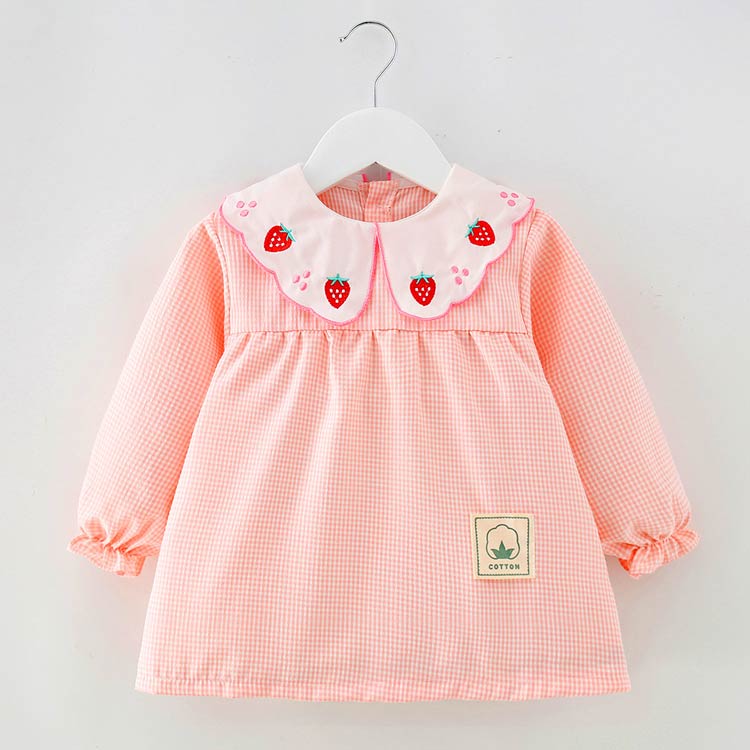 お食事エプロン 長袖 汚れ防止 防水 イチゴ刺繍レッド イチゴ刺繍ピンク イチゴ刺繍イエロー イチゴ刺繍コーヒー ハート刺繍レッド ハート刺繍ピンク ハート刺繍イエロー ハート刺繍コーヒー 90cm 100cm 110cm 120cm