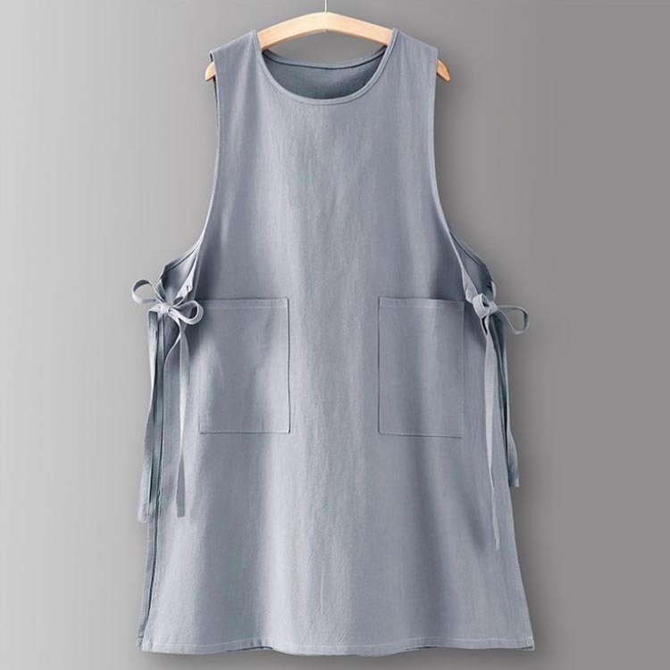 エプロン 無地 シンプル クルーネック キッチン用品 食器 調理器具 新登場! ベージュ ブルー グレー グリーン