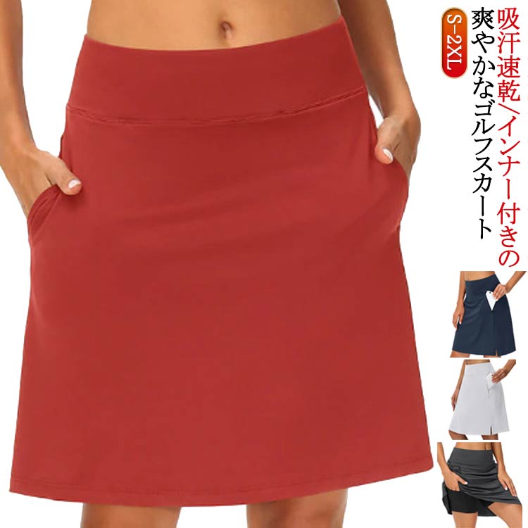 ゴルフスカート インナー付き 丈長め ゴルフ ウェア レディースウェア スカート 早い者勝ち グレー レッド ホワイト ネイビー ブラック S M L XL 2XL
