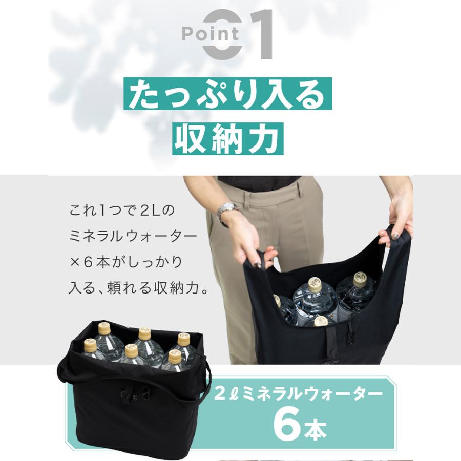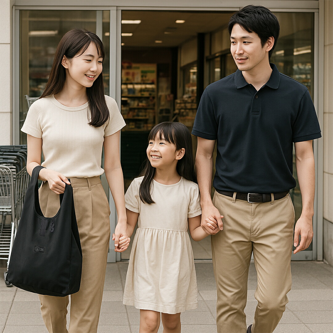日常のお買い物からアウトドアシーンまで幅広く活躍する、マチ広めのデザインが魅力です。マチ付きで、たっぷりと荷物を収納できるため、コンビニでのちょっとした買い物から、マザーズバッグとしての使用、さらには大容量を活かしたマイバッグとしても最適。肩掛けベルトが付いているので、重たい荷物もラクラク運べます。