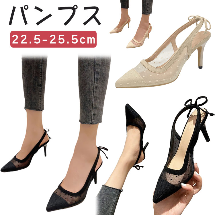 ドット柄 シースルー パンプス ポイン レディース靴 パンプス 続々登場 ブラック ベージュ 22cm 22.5cm 23cm 23.5cm 24cm 24.5cm 25cm