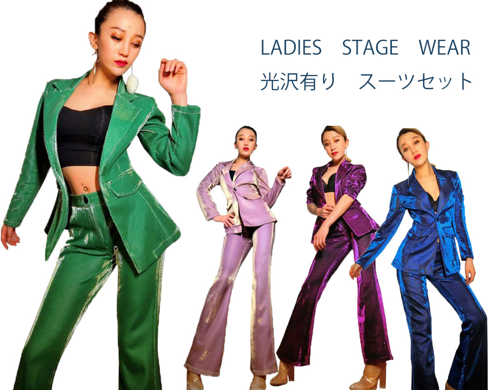 ダンス衣装 レディース スーツセット レディースファッション 特集 S M L XL ブルー グリーン ゴールド レッド