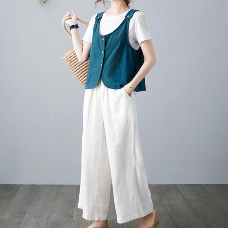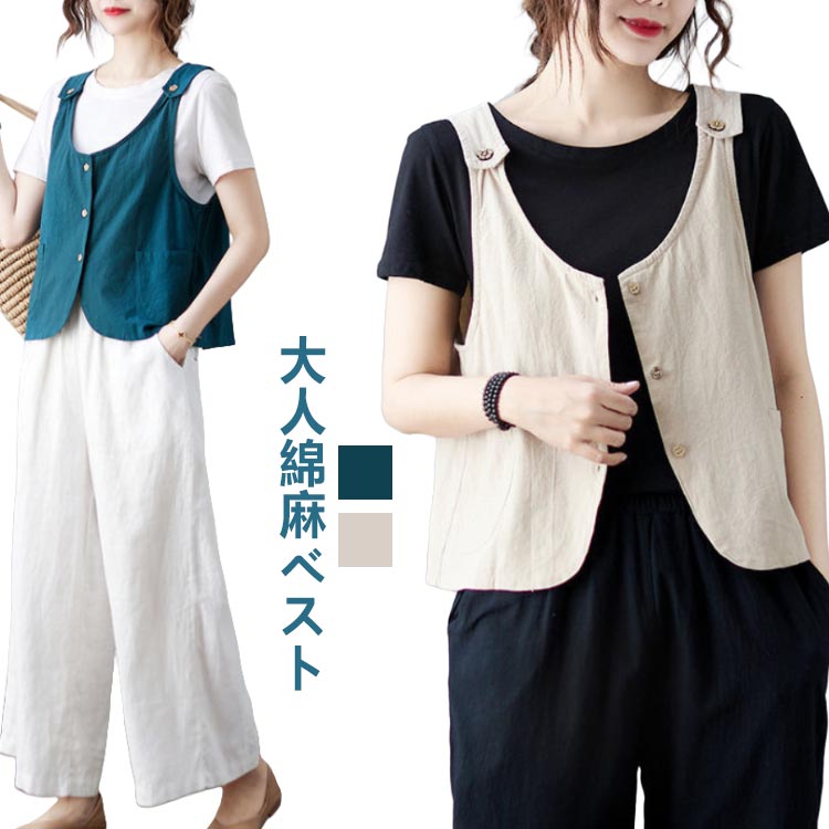 綿麻 ベスト ジレ 春夏 レディース トップス ベスト 豊富な品揃え マリンブルー ベージュ M L XL 2XL 3XL 4XL