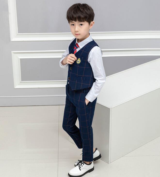 4点セット:パンツ+ベスト+シャツ+リボン(バッジ付き)