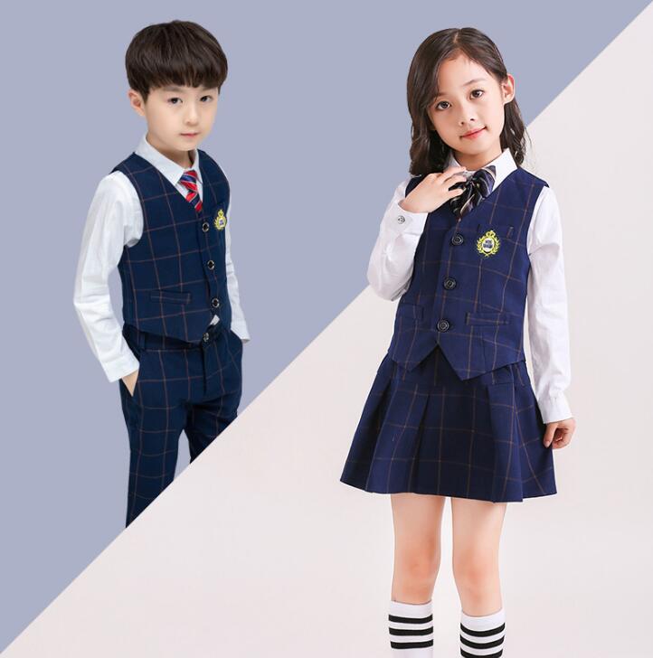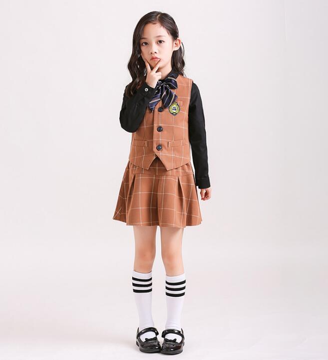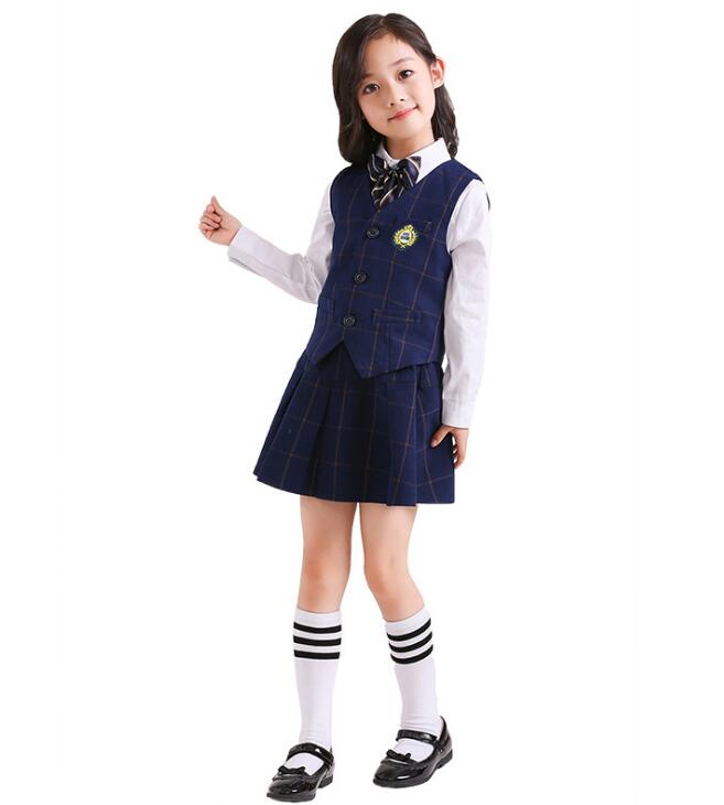 4点セット:スカート+ベスト+リボン+靴下(バッジ付き)