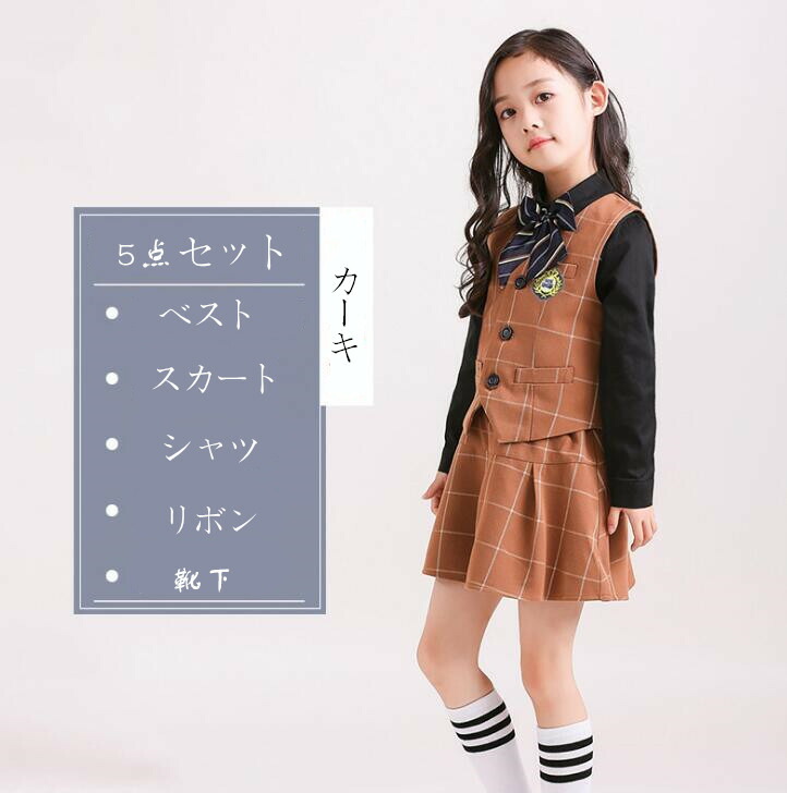 5点セット:スカート+ベスト+シャツ+リボン+靴下(バッジ付き)