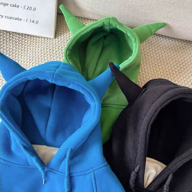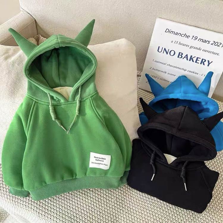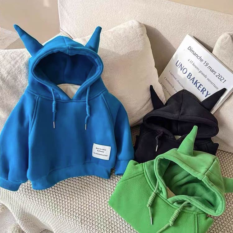子供服 フード付き プルオーバー 耳付 キッズ トップス パーカー 続々入荷中 グリーン/裏起毛 ブルー/裏起毛 ブラック/裏起毛 80 90 100 110 120 130