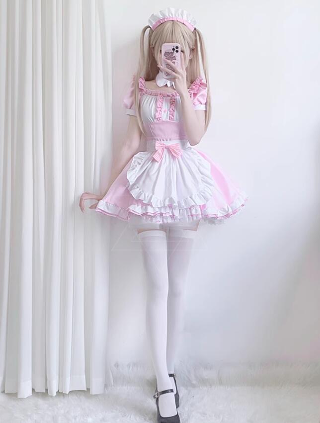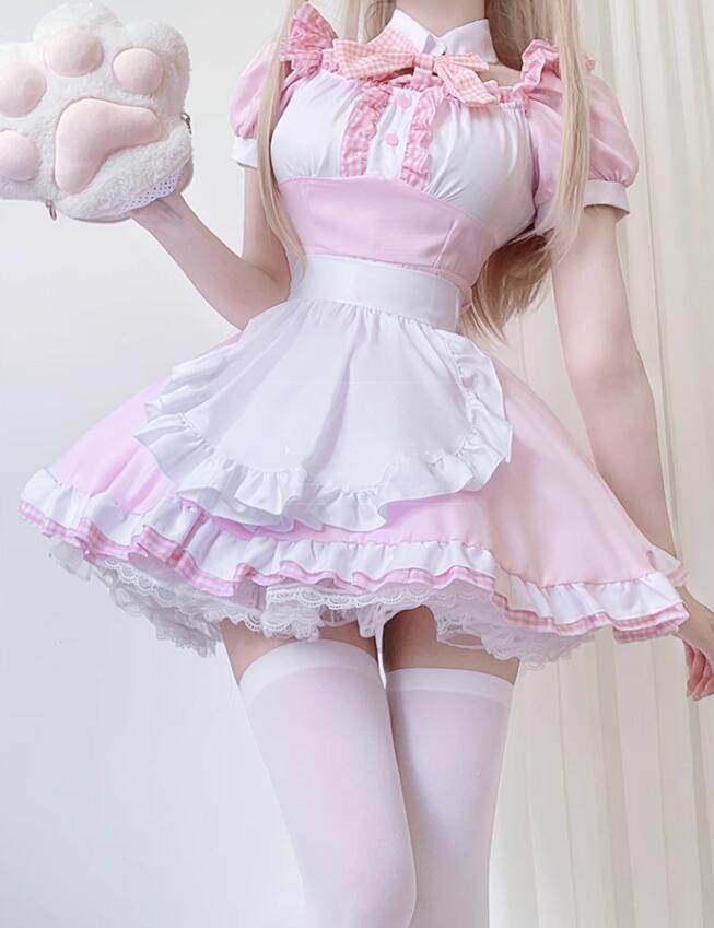 ピンク メイド服 可愛い メイドロリー コスプレ 変装 仮装 ワンピース 人気 ドレス ドレス+パニエ S M L XL XXL 3XL