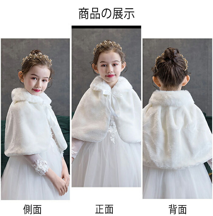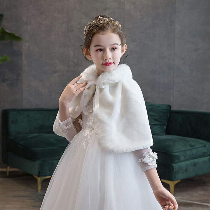 商品名:子供 ボレロ フォーマル キッズボレロ マント ショール ケープ 女の子 キッズ ベビープリンセス ジュニア ふわふわ あたたかい 結婚式 七五三 発表会 披露宴 発表会 入学式 お宮参り 女の子 小学生 秋 冬 アウター 羽織物 上着 白