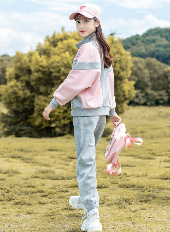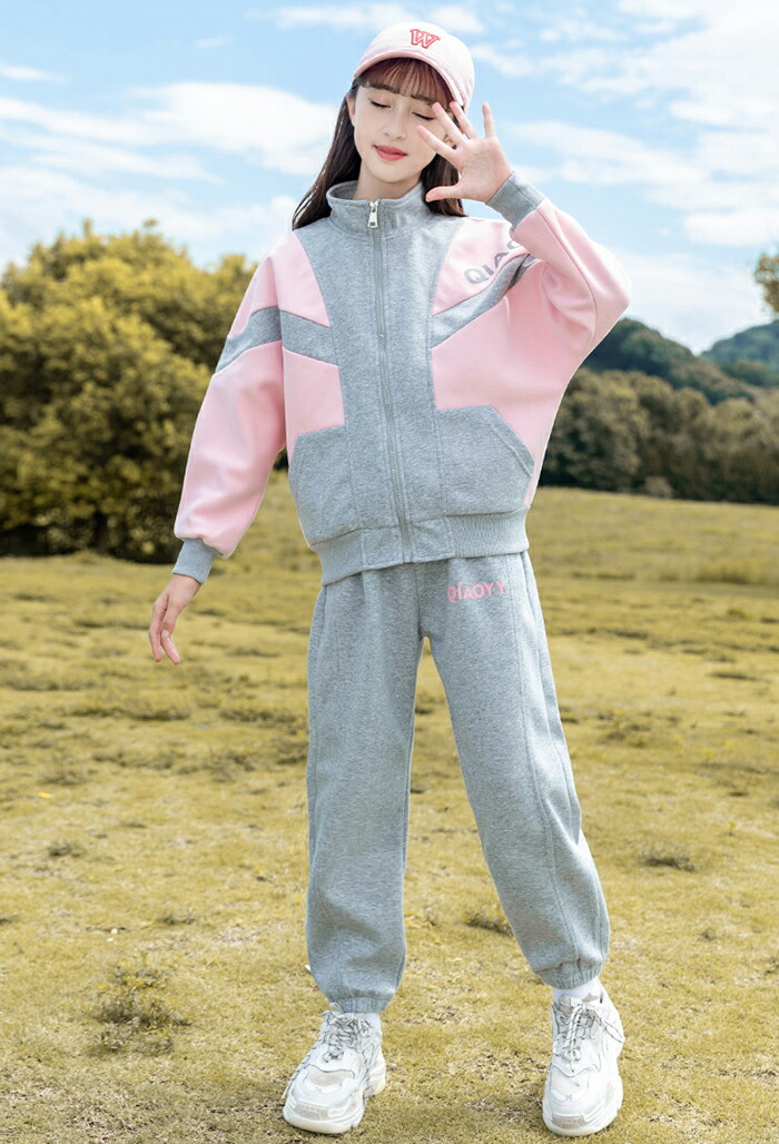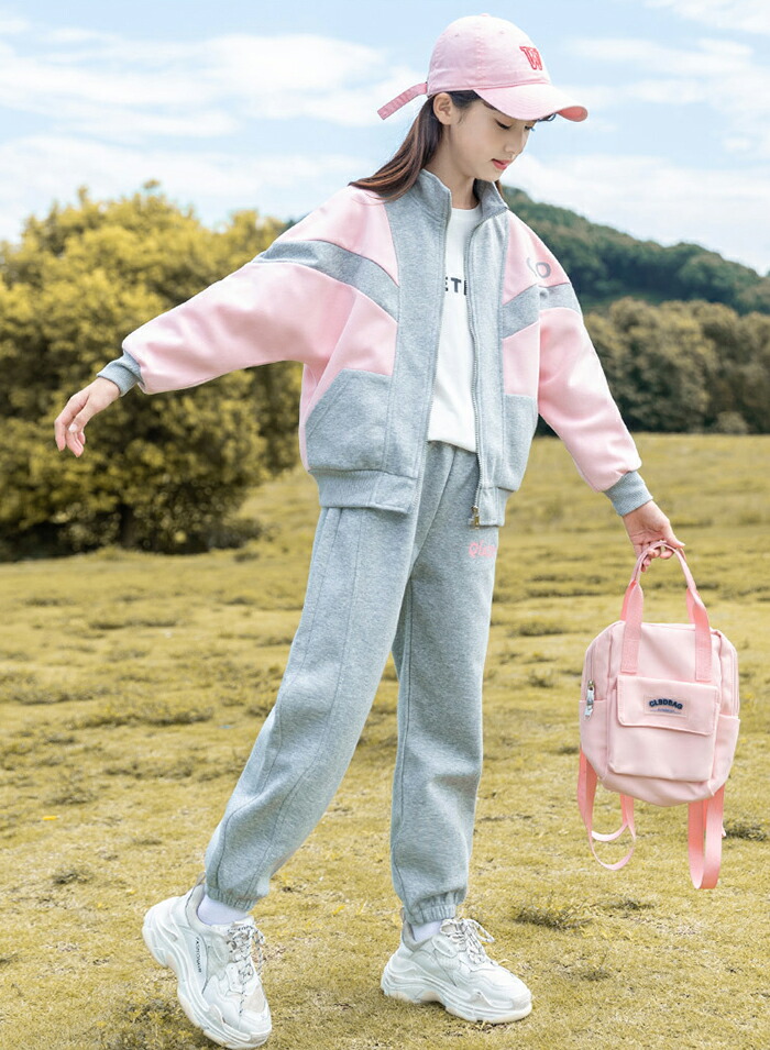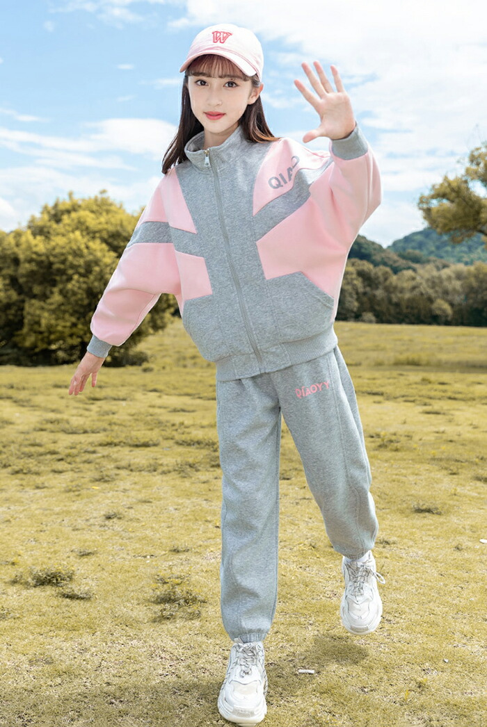 子供服 女の子 ジャージ 上下セット セットアップ スポーツウェア 長袖 ルームウェア 2点セット 韓国 小学生 切替 ガールズ 春秋 運動着 通園 通学 カジュアル ジュニア服