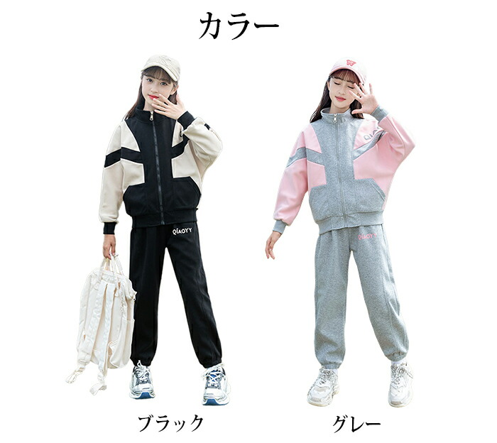 商品名:子供服 女の子 ジャージ 上下セット セットアップ スポーツウェア 長袖 ルームウェア 2点セット 上下セット 韓国 子供服 小学生 切替 ガールズ 春秋 運動着 ジュニア服 通園 通学 カジュアル パーカー ゆったり トレーニング 体育 配色 姉妹 双子 おしゃれ HIPHOP ダンス 衣装