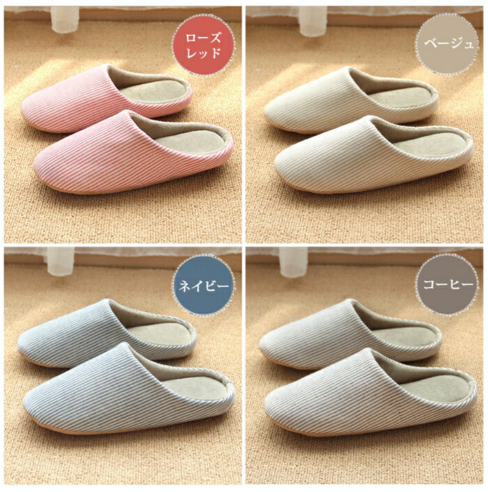 スリッパ ルームシューズ 縦ストライプ 日用品雑貨 文房具 手芸 続々登場 ローズレッド ベージュ コーヒー ネイビー S(22.5cm-23.5cm) M(24cm-24.5cm) L(25cm-26cm) XL(26.5cm-27cm) 2XL(27.5cm-28cm)