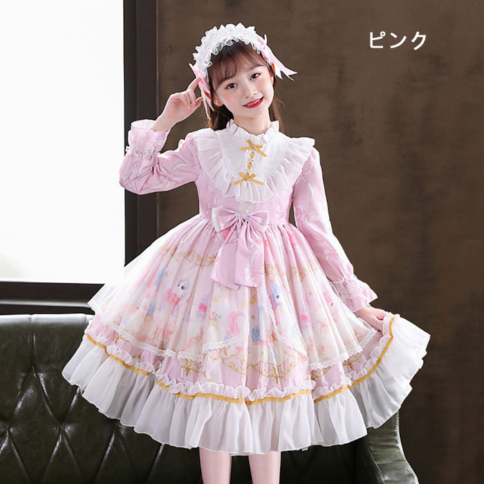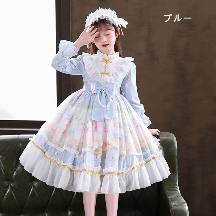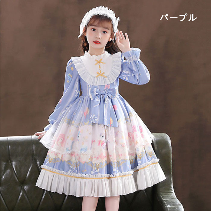メイド服 子供 キッズ ジュニア 女の キッズ ワンピース 早い者勝ち ピンク ブルー パープル ワンピース単品 ワンピース+髪飾り ワンピース+パニエ ワンピース+髪飾り+パニエ