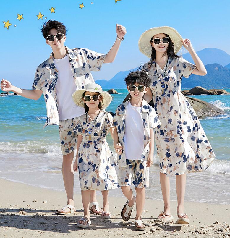 親子ペア 夏服 海旅行 衣装 アロハシ ドレス シャツ+半ズボン 白Tシャツ+半ズボン S M L XL XXL 3XL 4XL 90 100 110 120 130 140 150 160