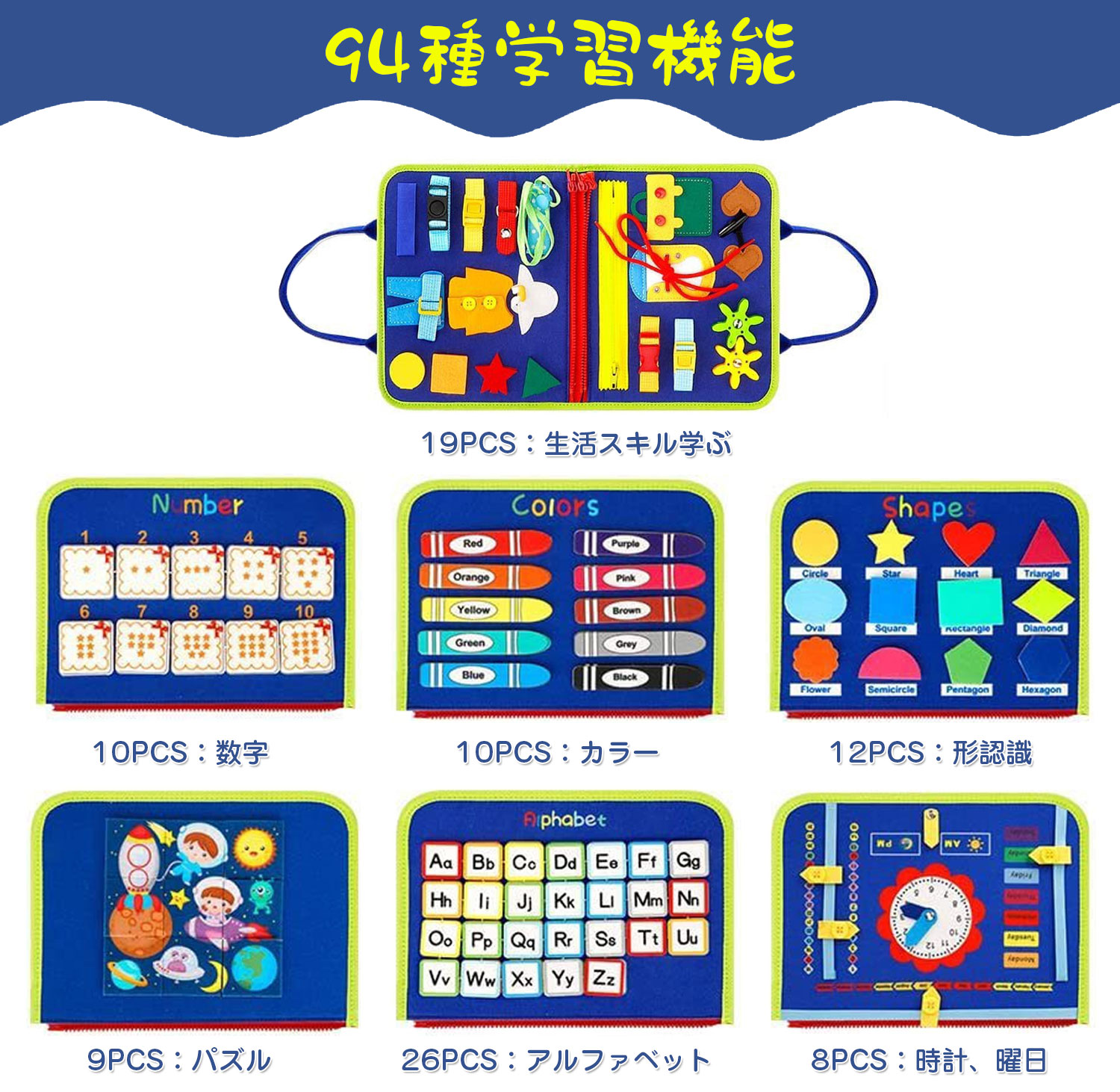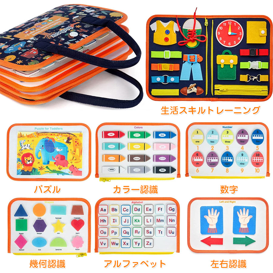 ビジーボード おもちゃ 赤ちゃん 知育おもちゃ 知育バッグ モンテッソーリ教具 学習パズル 幼児 形合わせ 指先訓練 女の子男の子6ヶ月0歳1歳2歳3歳4歳子ども誕生日プレゼント 数字