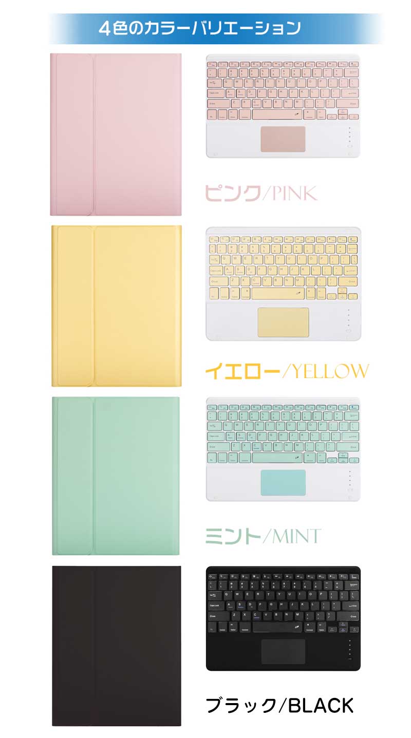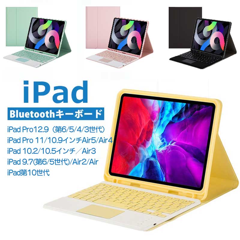 iPad Pro 12.9インチ第6 10.9インチiPad第10世代(2022年) iPad Pro12.9(第6/5/4/3世代)兼用 iPad Pro 11/10.9インチAir5/Air4 iPad 10.2/10.5インチ/Air3兼用 iPad 9.7(第6/5世代)/Air2/Air兼用 ミント ピンク イエロー ブラック