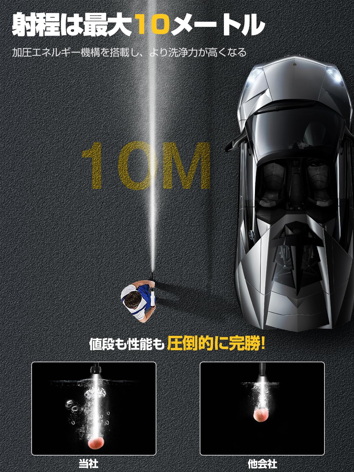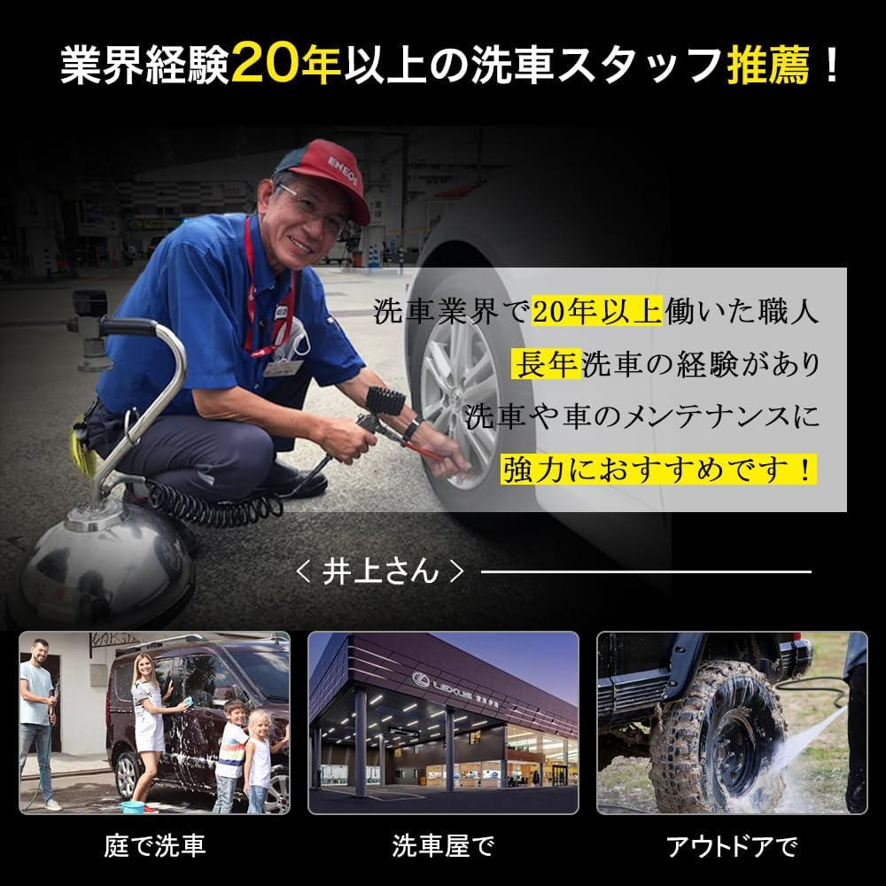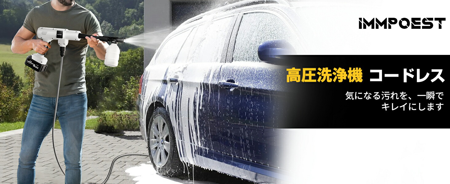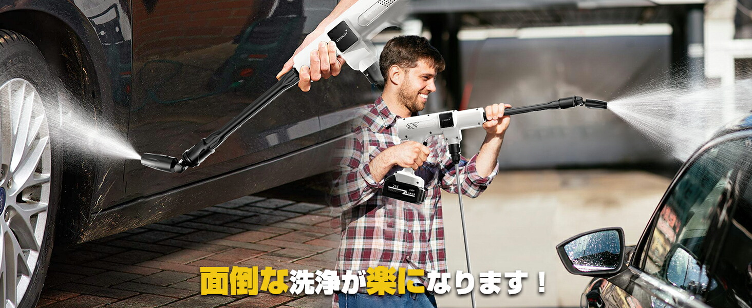 本高圧洗浄機コードレスは洗車スタッフ監修で使いやすく、洗車や大掃除に便利な高圧洗浄機。