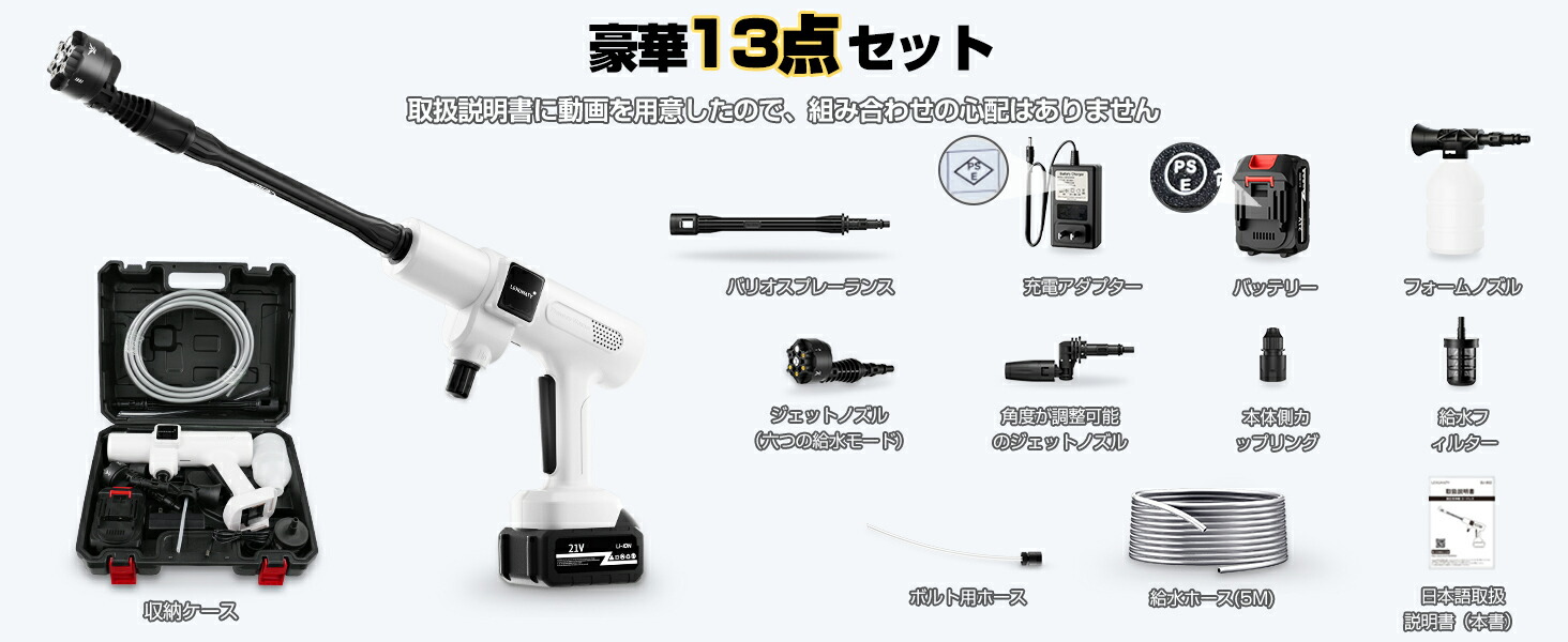 本高圧洗浄機の日本語取扱説明書には商品の組み立てる動画も付いております。組み立ての心配はありません。ご購入の日から1年間の商品保証があり、万が一商品は初期不良や故障などがありましたら、また使用中に質問がある場合は、いつでもお気軽にお問い合わせください。ご満足できるまで力を尽くしています。平日には24時間以内に対応できますので、ご安心ください。