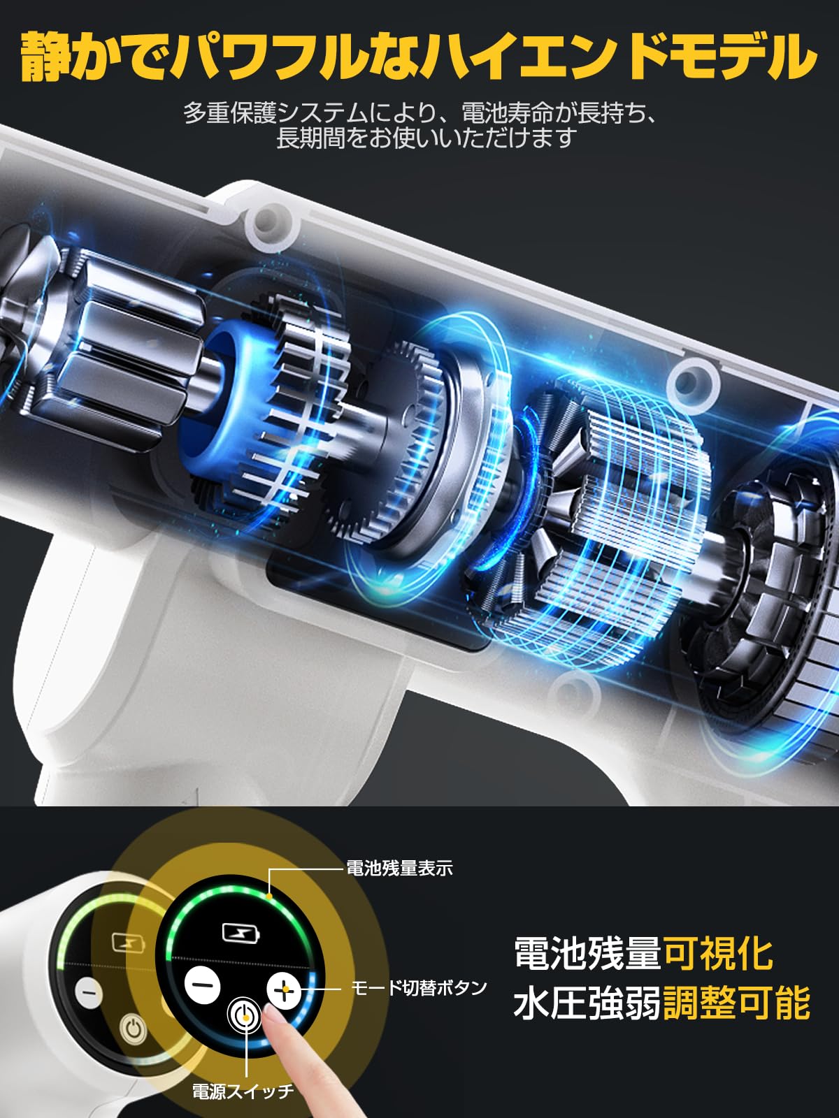 高圧洗浄機 コードレス 充電式 200 ホワイト イエロー ブラック