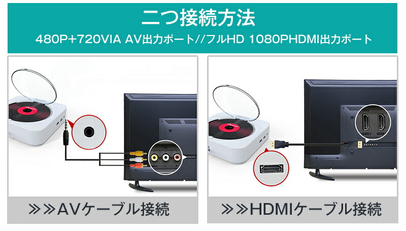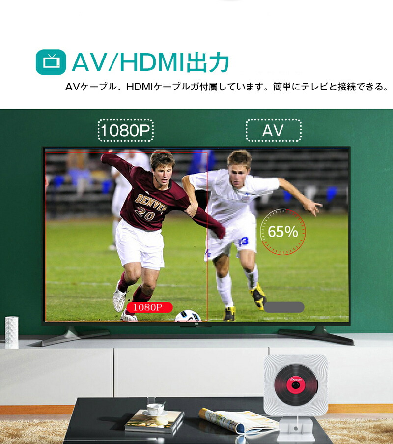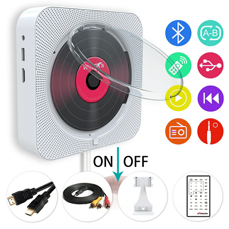 CD プレーヤー 壁掛け DVDプレーヤー コンパクト リモコン付き ポータブル HDMI 1080p 出力テレビ プレイヤー Bluetooth 置き掛け兼用 防塵カバー 日本語説明書 壁掛