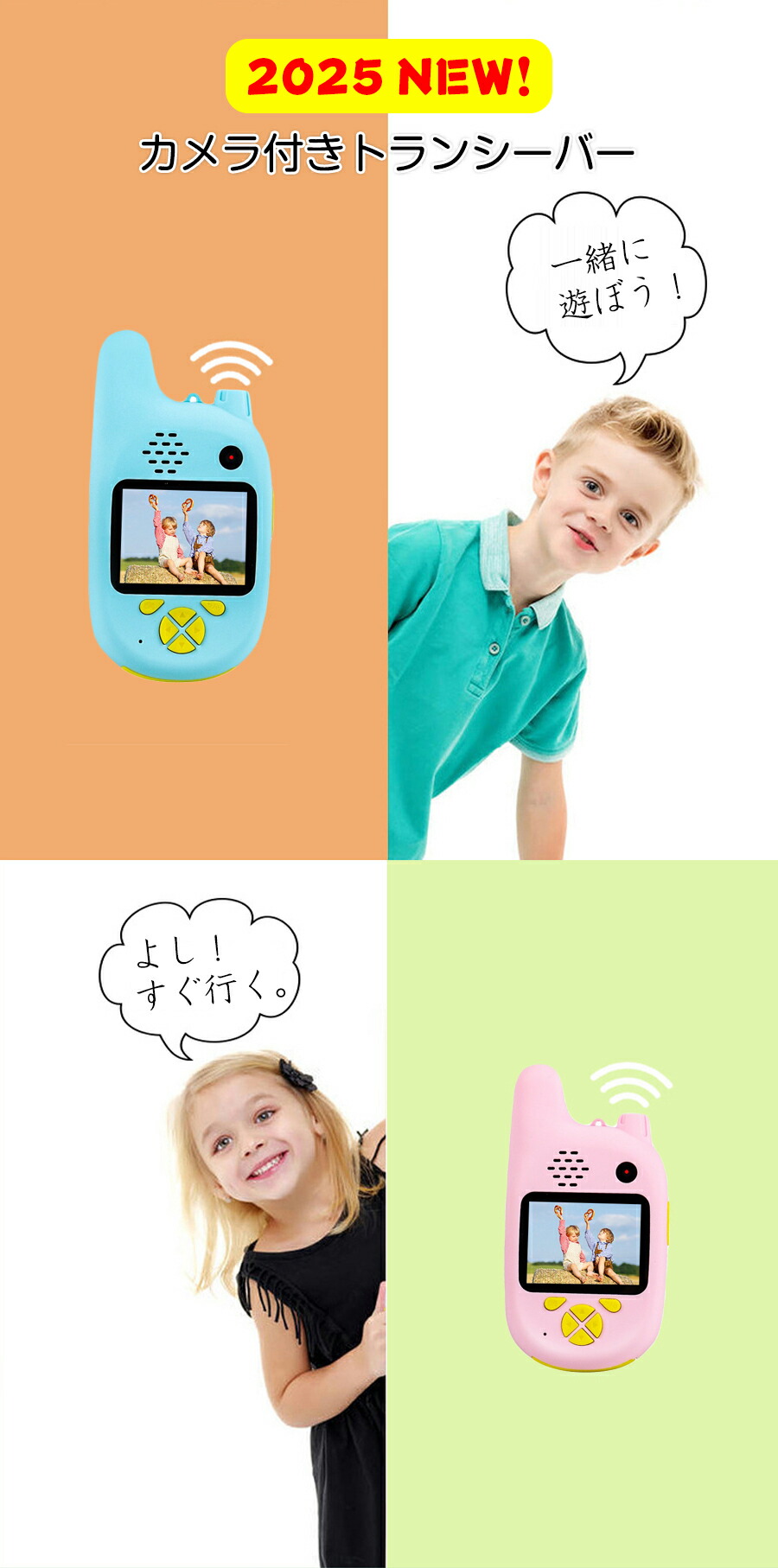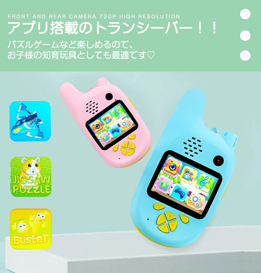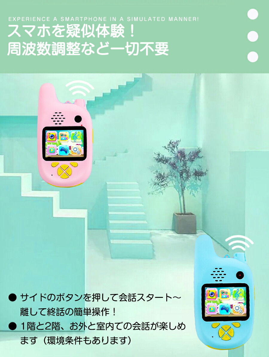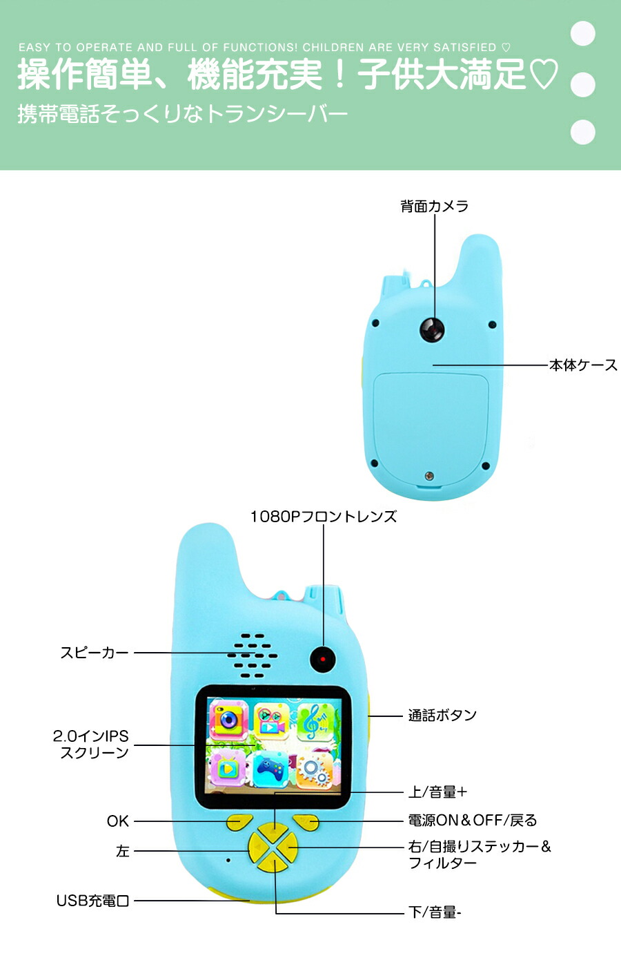 トランシーバー おもちゃ 2台セット 子供用 カメラ付き 小型 TFカード対応 カラー液晶スマホタイプ 知育おもちゃ 子ども誕生日プレゼント小学生男の子女の子2歳3歳4歳5歳6歳人気ギ ゲーム機能搭載