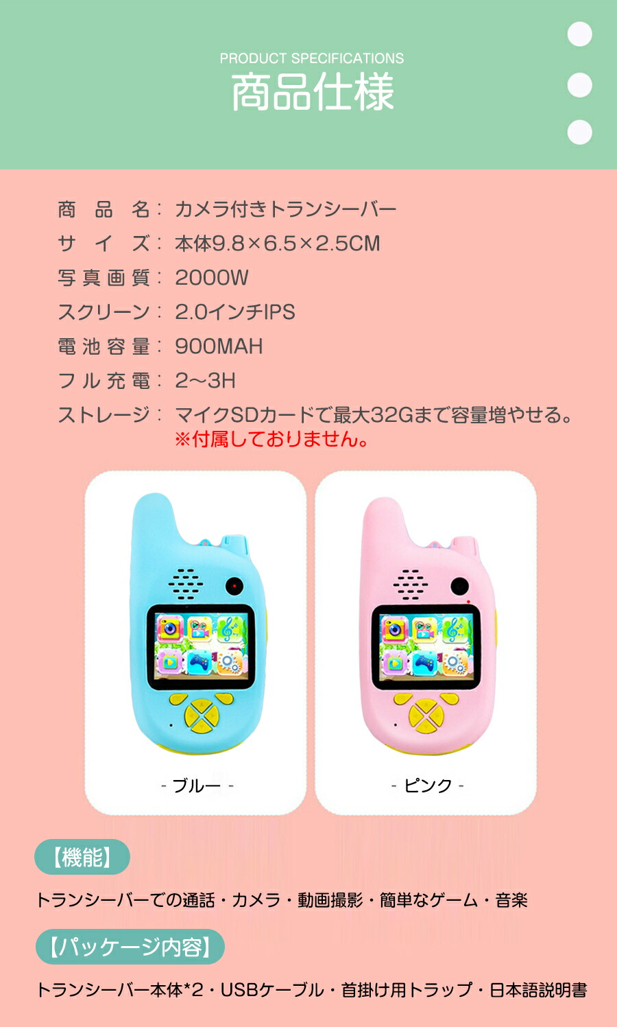 お子様が楽しめる機能が満載、多機能トランシーバーです!