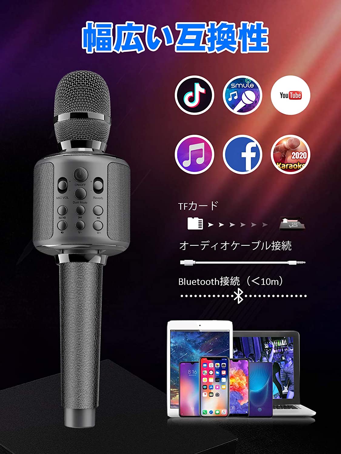 ワイヤレスカラオケマイクは、Android iOSスマートフォン、PC、ラップトップ、APP、およびその他のBluetoothデバイスを含むすべてのBluetoothデバイスに接続できます。簡単にカラオケをお楽しみいただけます。 Bluetooth接続の長距離は10mです。最後に使用した機器を記憶し、自動で再接続します。