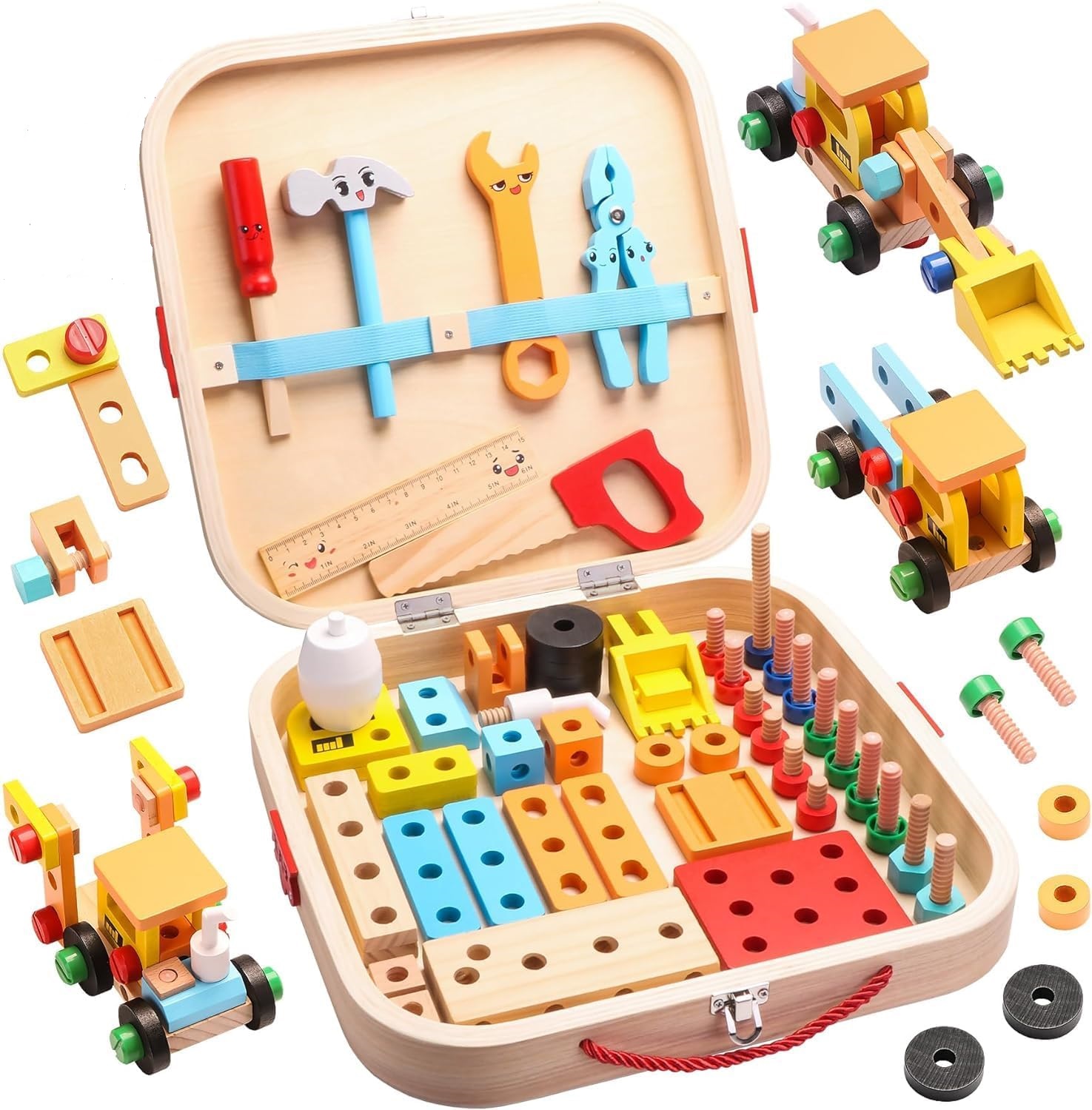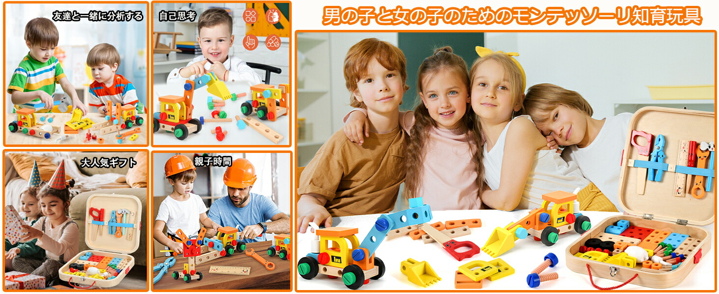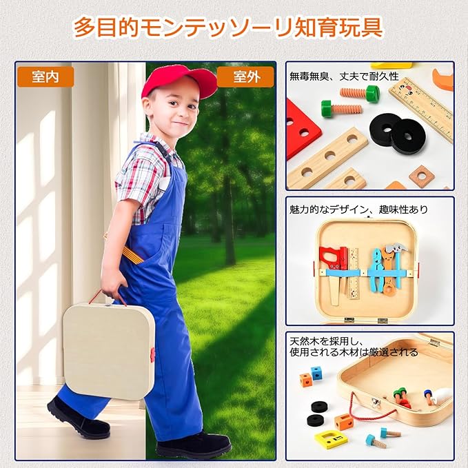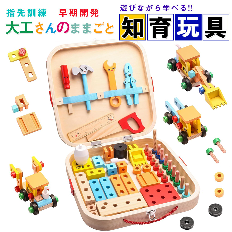 大工 おもちゃ 工具セット 大工さんままごとセット 積み木 子ども 知育おもちゃ モンテッソーリ ごっこ遊び 室内 工具 木製木のおもちゃ 指先訓練 五感 子ども誕生日プレゼント人 形合わせ