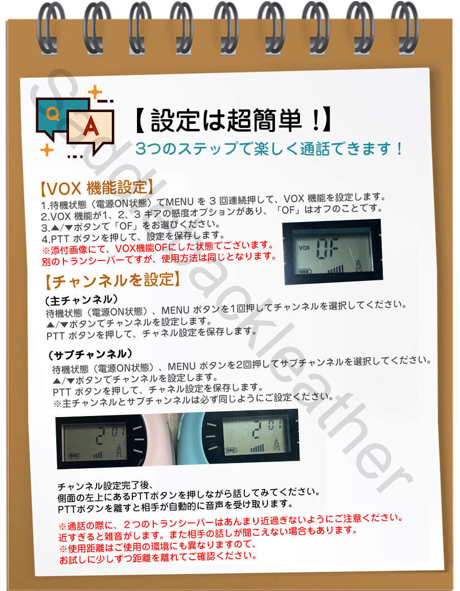 通話機能:トランシーバー2台セット 20chからチャンネルを合わせれば同時通話も可能。