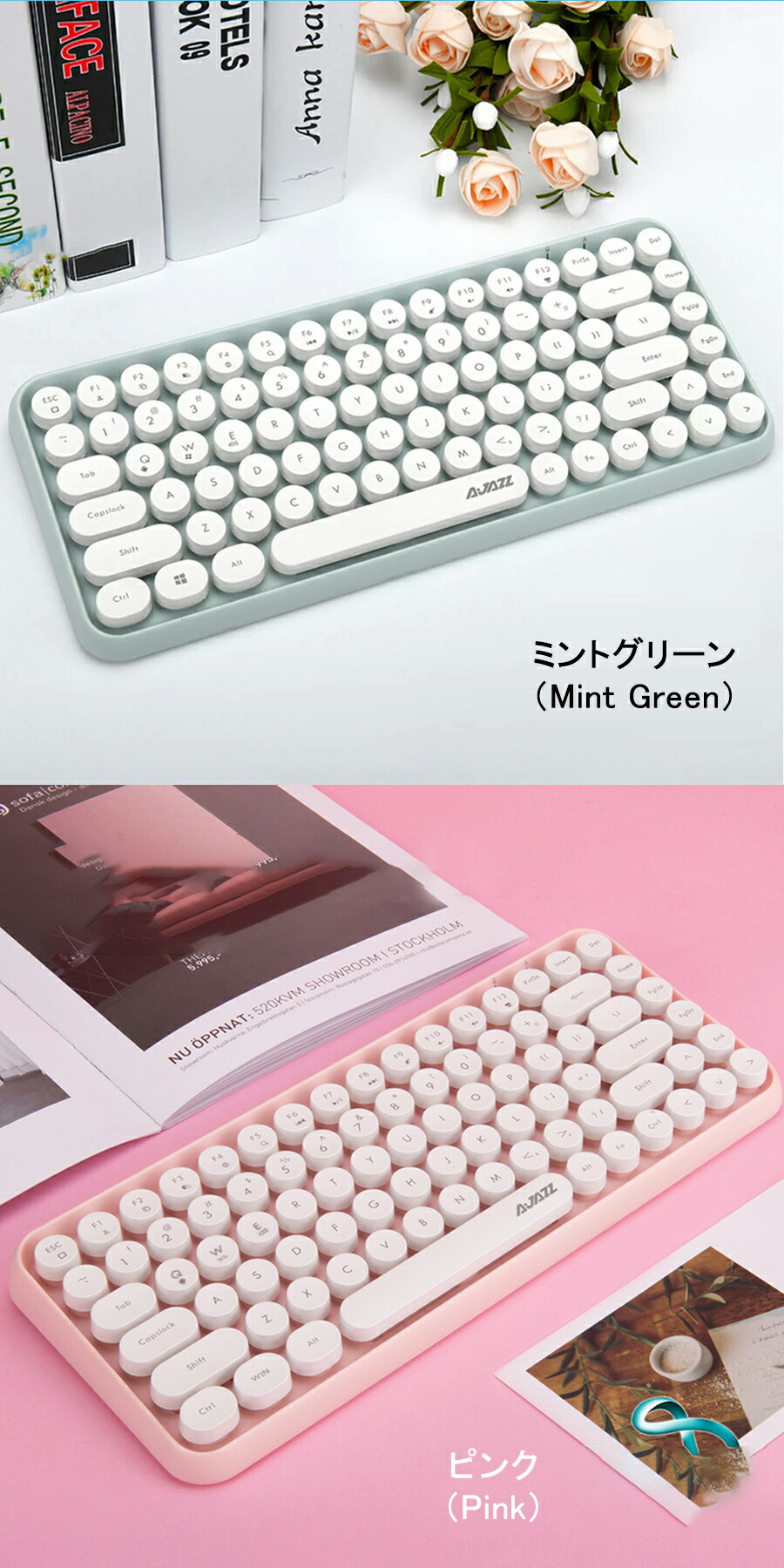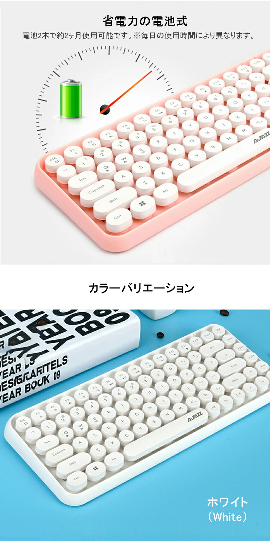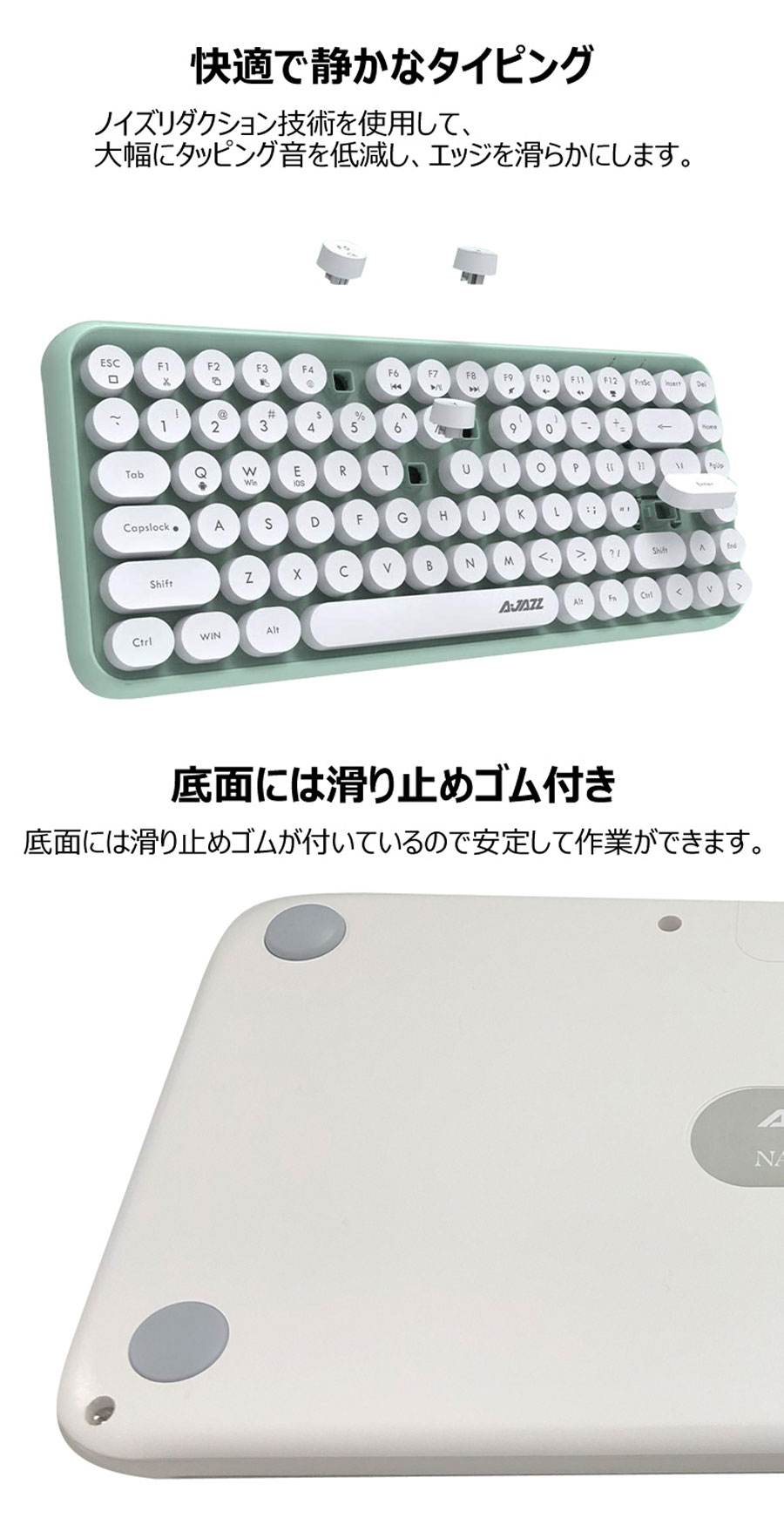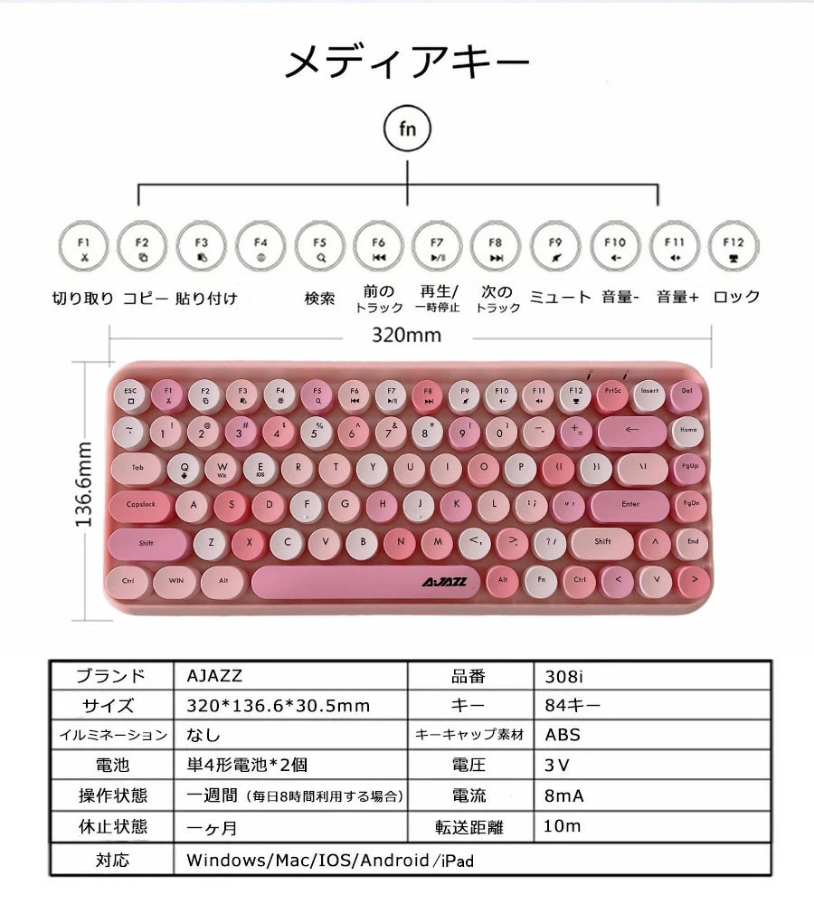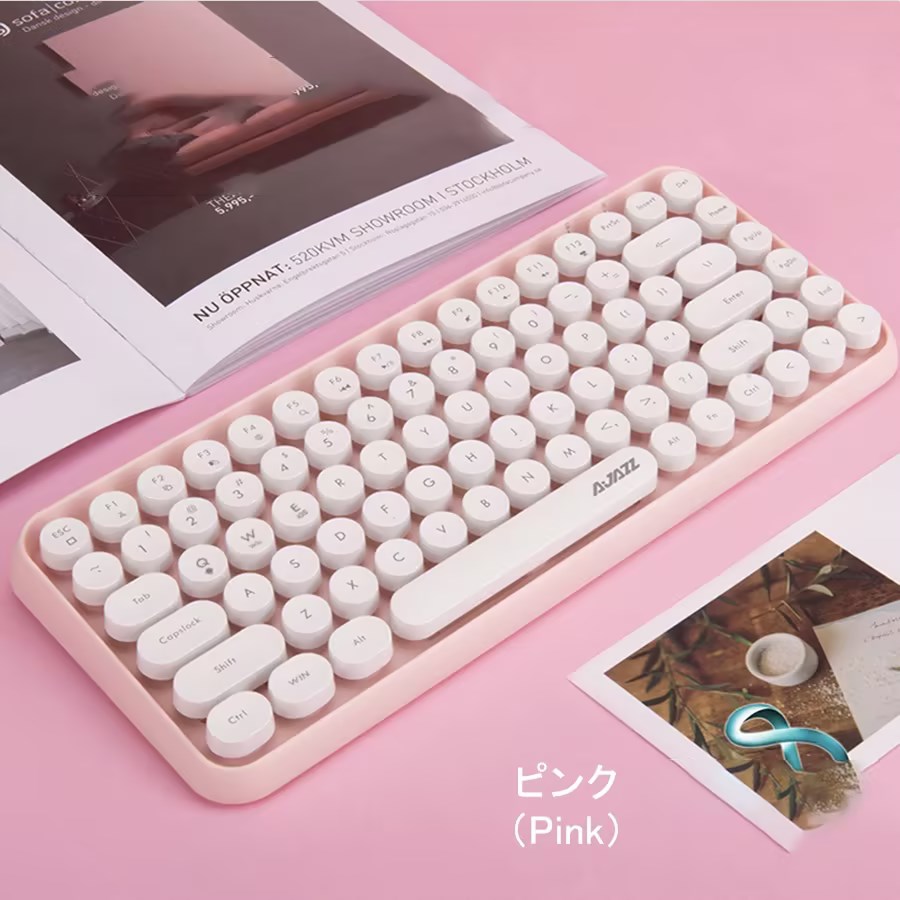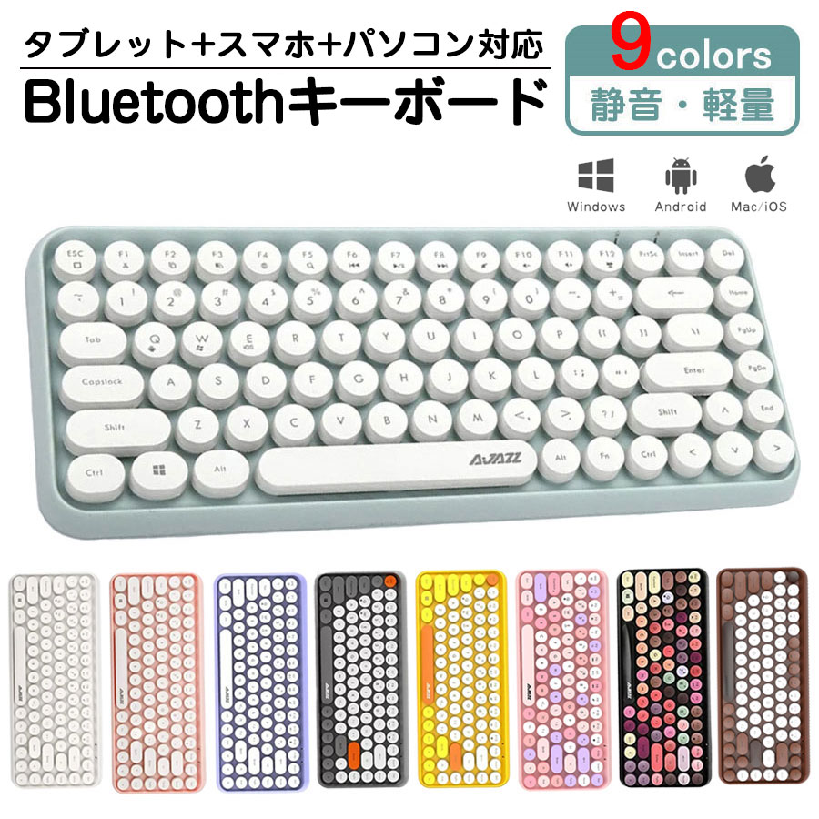 bluetooth キーボード 無線 静音 軽量 ipad PC macタブレット用キーボード かわいい コンパクト タイプライター風 円形キーキャップ キーボードマウスセ レトロ