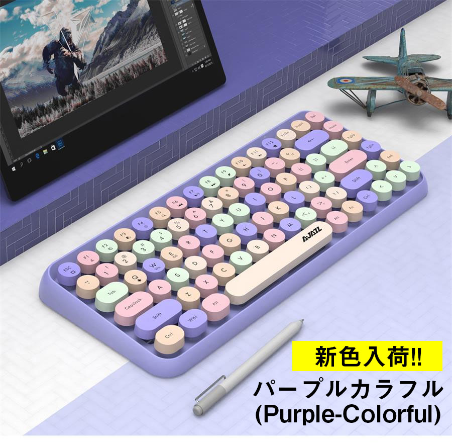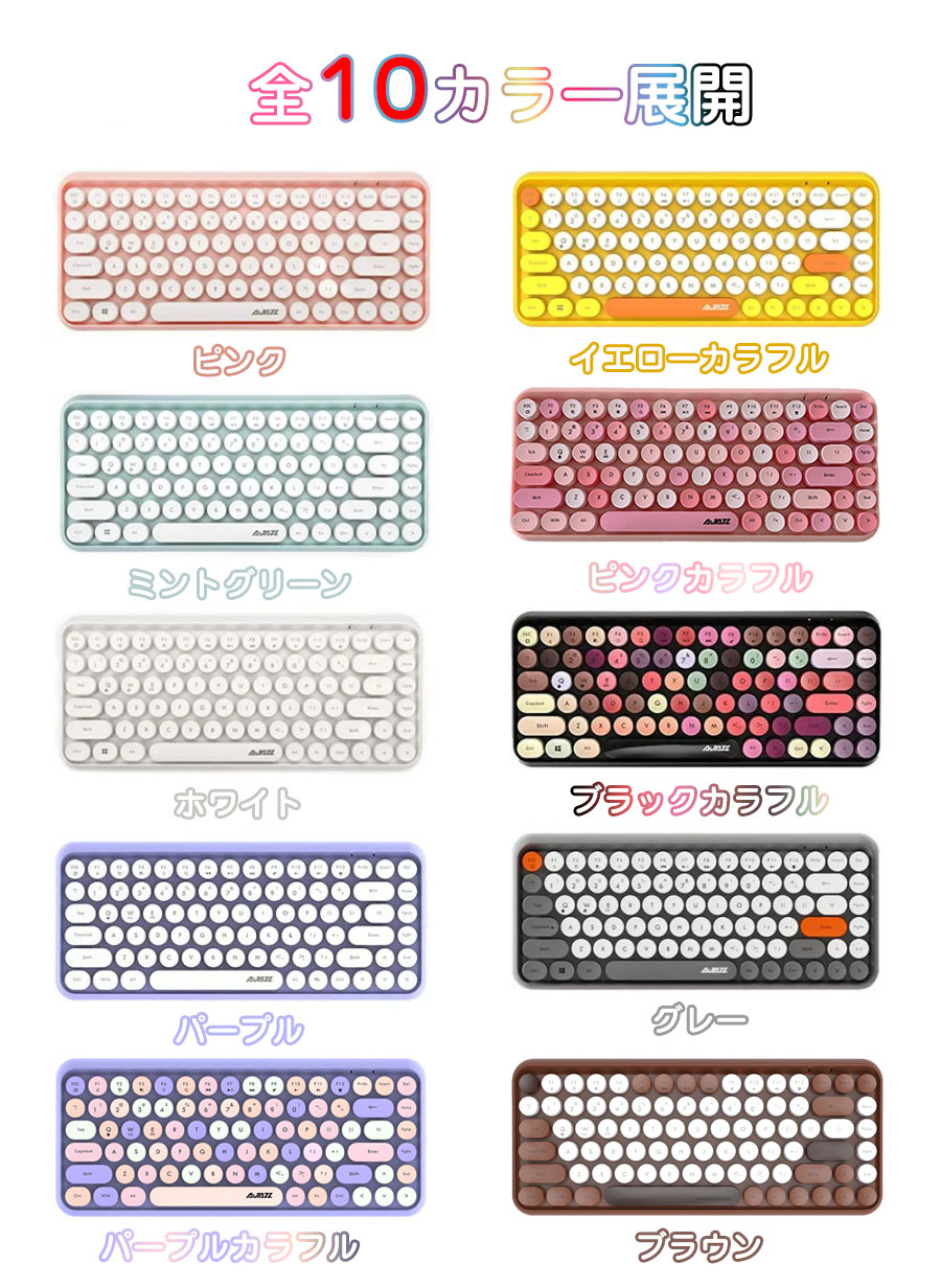 bluetooth キーボード 無線 パープル ピンク ミントグリーン ブラック ホワイト グレー イエローカラフル パープルカラフル ブラックカラフル ピンクカラフル ブラウン