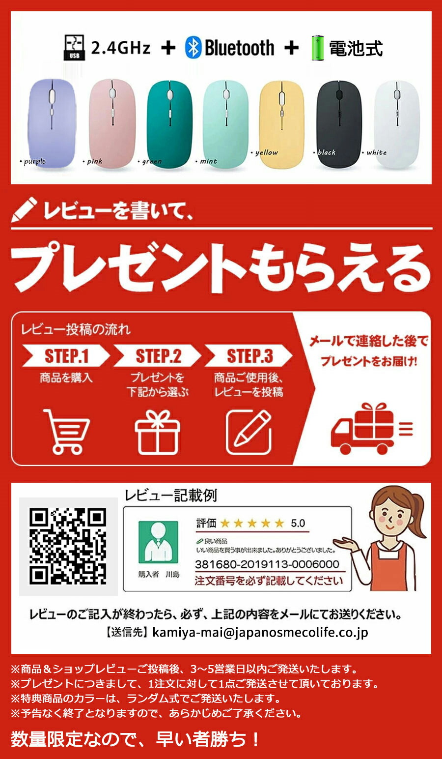 ご購入時のご注文番号を必ずご記載の上、メールにてご連絡下さい。
