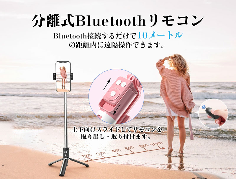 Bluetooth接続するだけで10メートルの距離内に遠隔操作できます。