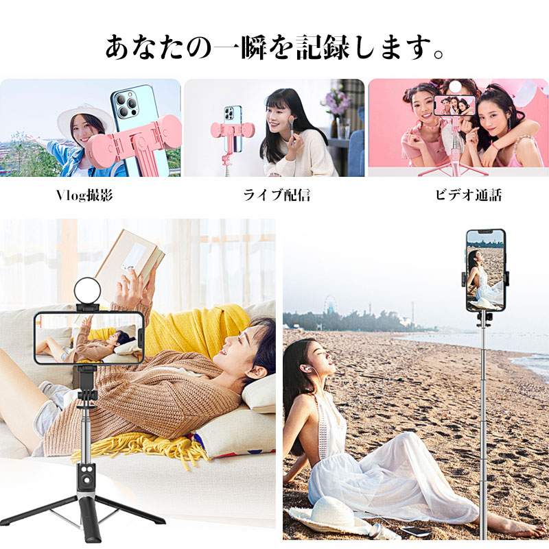 スマートフォンジンバル Bluetooth LEDライト付き 自撮り棒 スマホ三脚 無線コントロール 7段で最大110cm階伸縮高さ調整 Androidスマホ対応 手ブレ防止 横型縦型動 iPhone