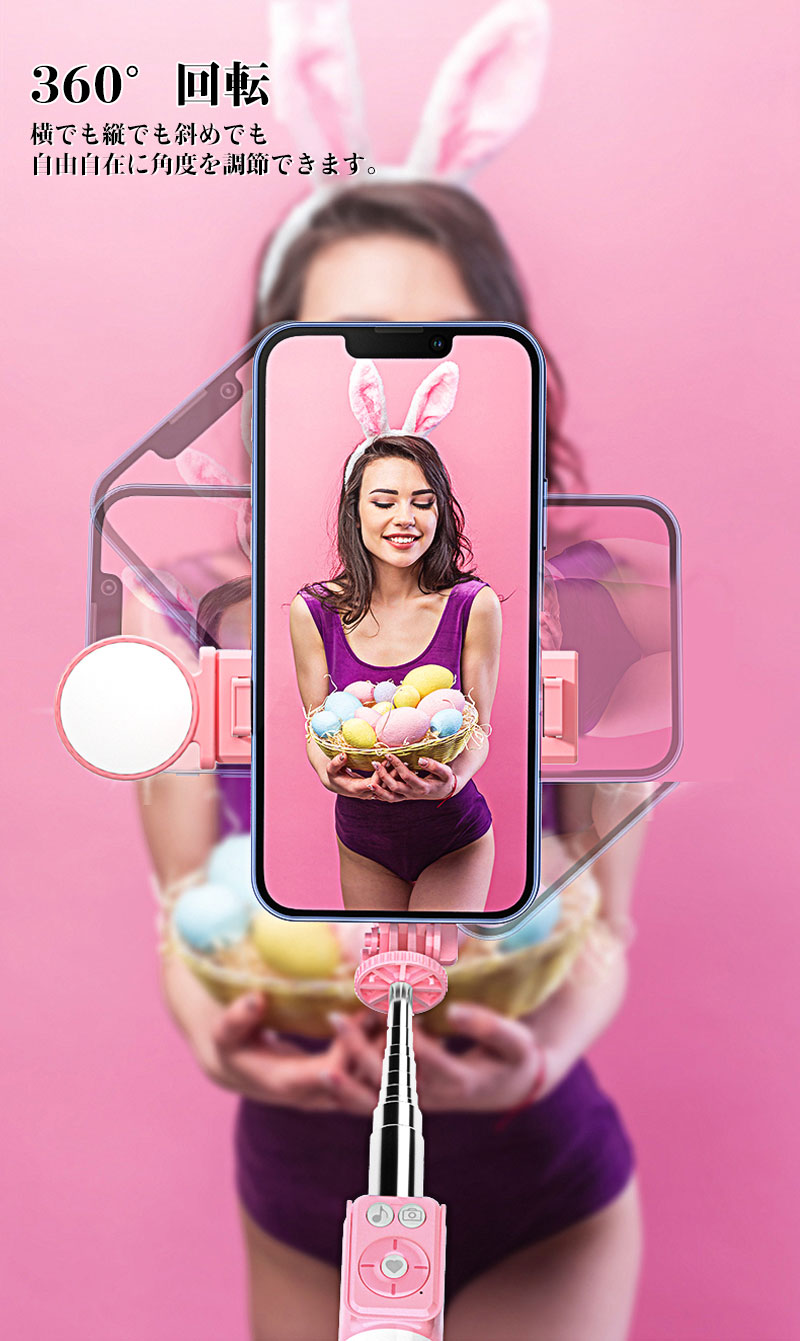 360°回転、横でも縦でも斜めでも自由自在に角度を調節できます。