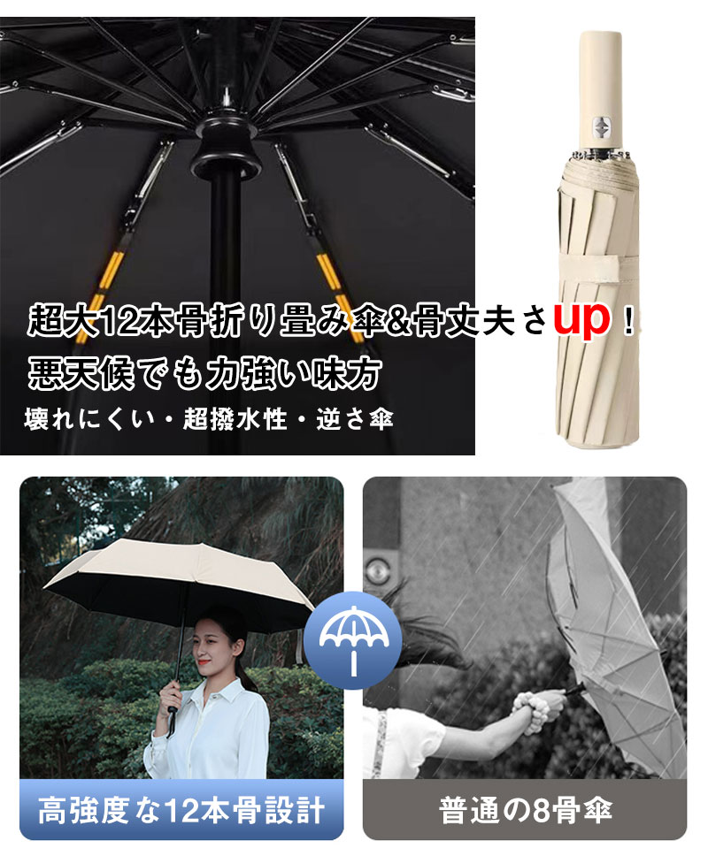 キーワード:折りたたみ傘 自動開閉 大きい メンズ レディース コンパクト 折り畳み傘 かさ ワンタッチ自動開閉 風に強い 頑丈 丈夫 シンプル 12本骨 耐風 撥水 男女兼用 遮光 uvカット uv対策 プレゼント