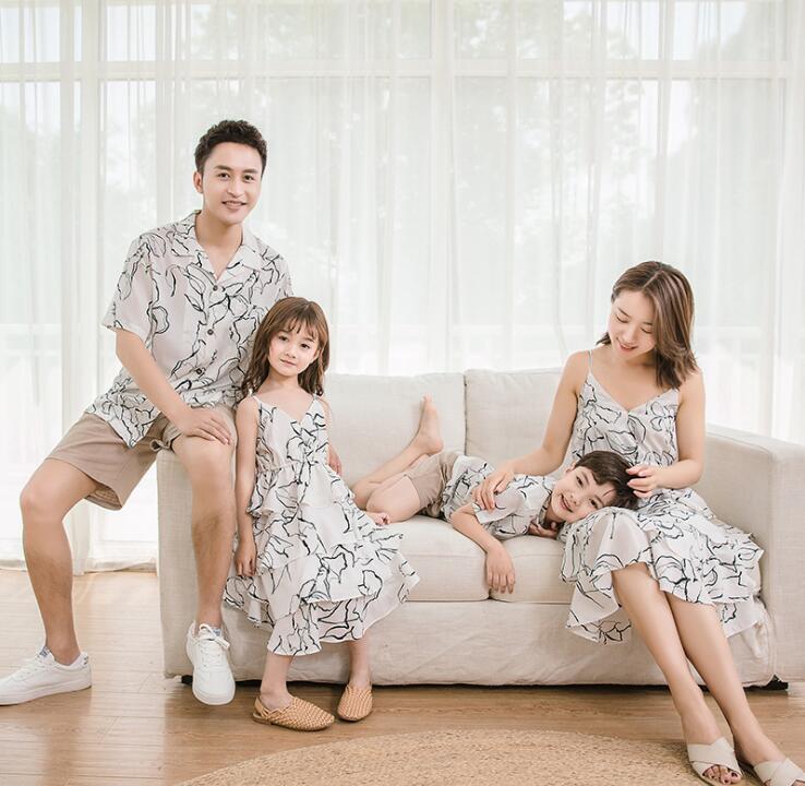 親子ペア アロハ アロハシャツ ペアルック カップル キャミソールドレス Tシャツ+半ズボン ビーチ衣装 海旅行衣装 親子コーデ 家族お揃い衣装 親子 パパ 息子 娘 ママ
