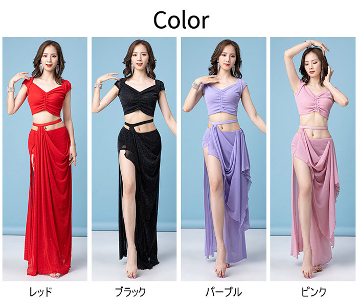 ベリーダンス 衣装 セット レッスン着 体操 ダンス ベリーダンス 衣装セット 特集 M L XL レッド パープル ブラック ピンク