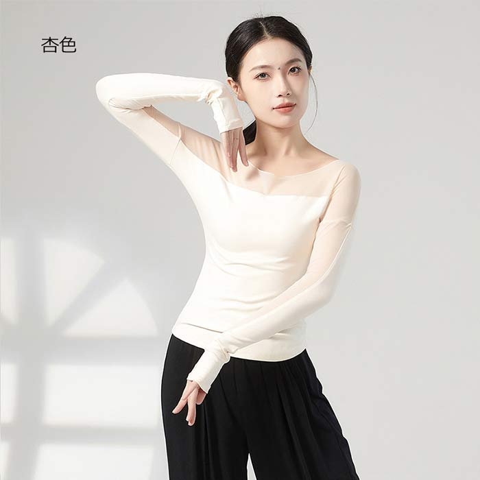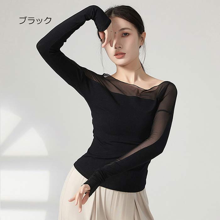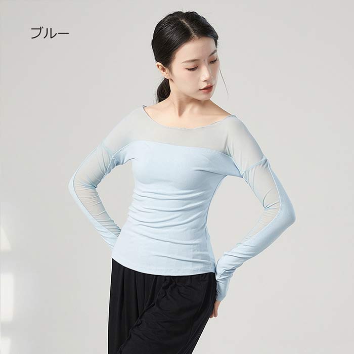 ダンス衣装 トップス バレエ 大人 長 S M L XL ブラック 杏色 ブルー グリーン グレー