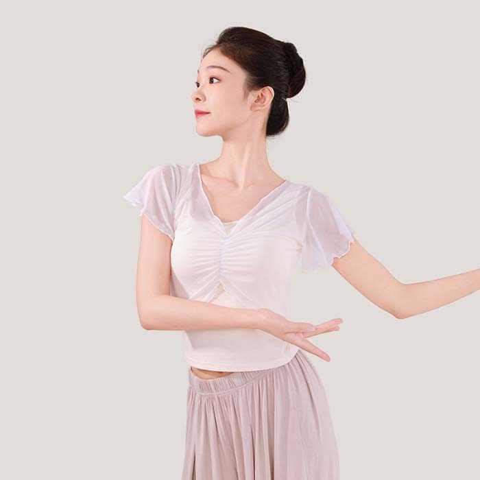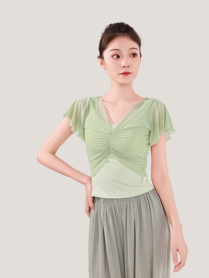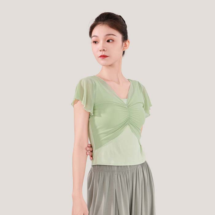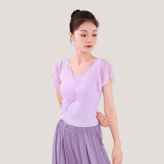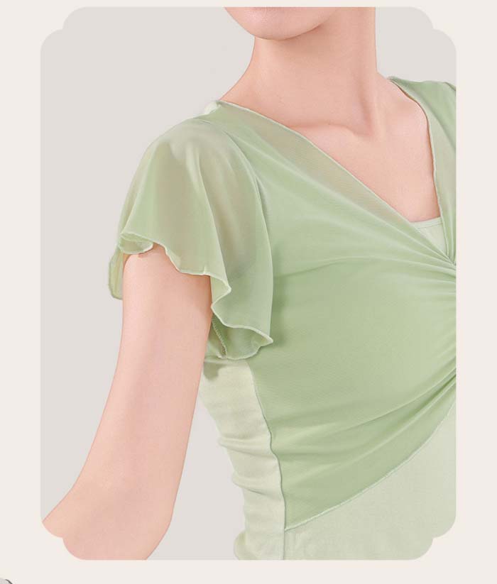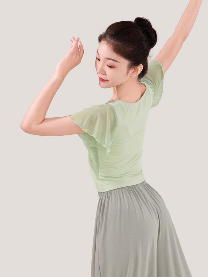 バレエ トップス フレア袖 ストレッチ S M L XL XXL ブラック ブルー 杏色 グリーン パープル