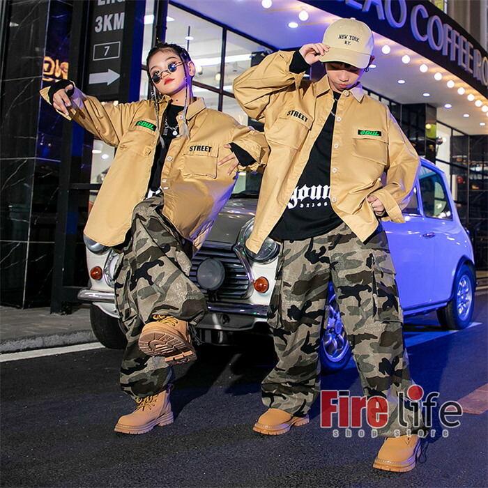 キッズダンス 衣装 迷彩柄 長袖シャツ キッズ 体操服 続々登場 長袖シャツ 迷彩パンツ(+300円) 上下2点セット(+2400円) 3点セット(+3000円) 120cm 130cm 140cm 150cm 160cm 170cm 180cm