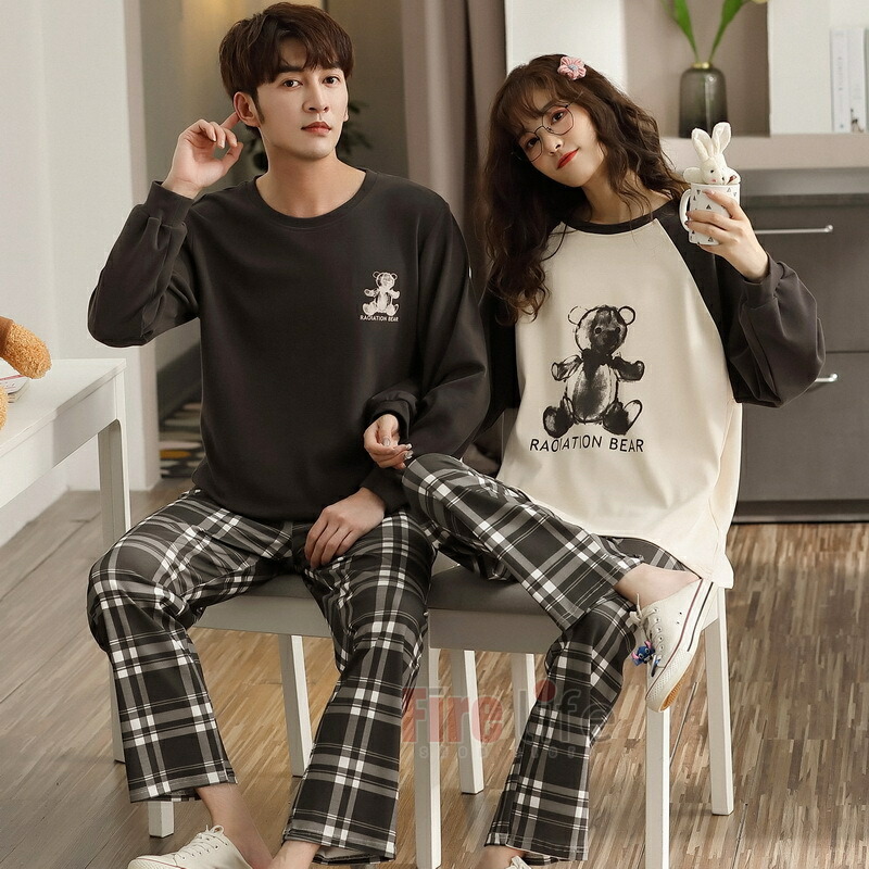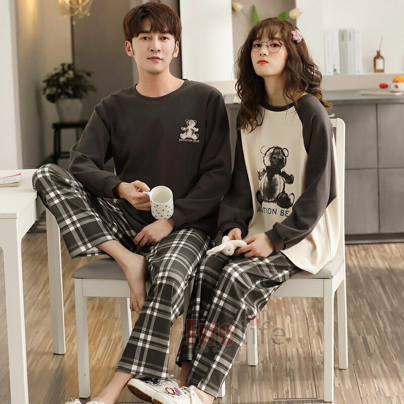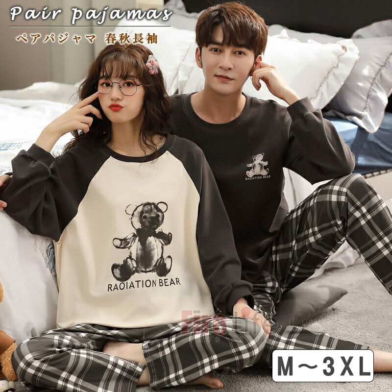 ペアパジャマ カップル 春秋 長袖 ペ 女M 女L 女XL 女XXL 男L 男XL 男XXL 男XXXL