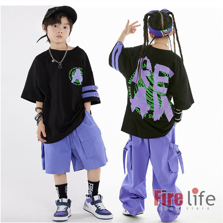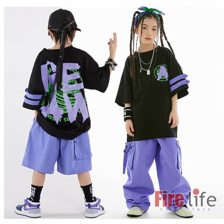 キッズダンス衣装 セットアップ 派手 キッズ ベビー マタニティ 新登場! 黒Tシャツ 紫ジャケット 短パンツ ロングパンツ 黒Tシャツ+短パンツ 黒Tシャツ+長パンツ 紫ジャケット+短パンツ 紫ジャケット+長パンツ 短-3点セット ロングー3点セット 120cm 130cm 140cm 150cm 160cm 170cm