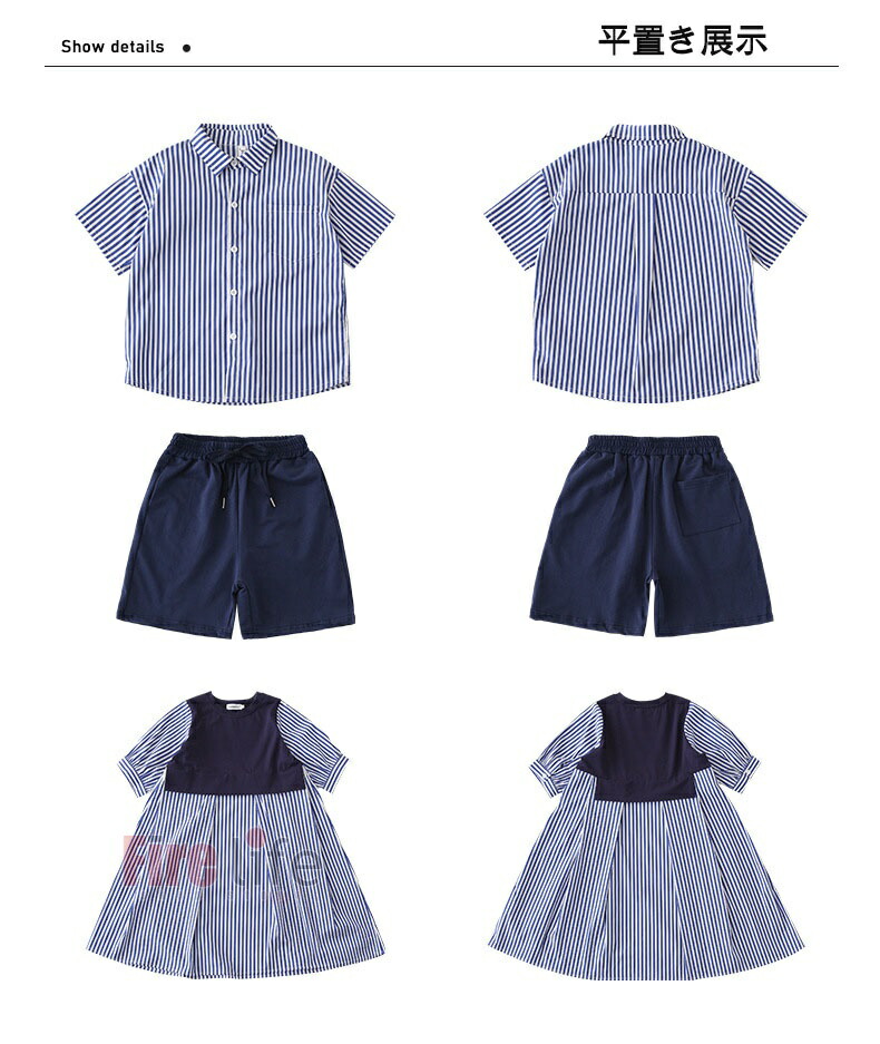 親子 ペアルック 親子でお揃い リンク 半袖シャツ ワンピース 半袖シャツ+短パンツ 80 90 100 110 120 130 140 大人S 大人M 大人L 大人XL 大人2XL 大人3XL