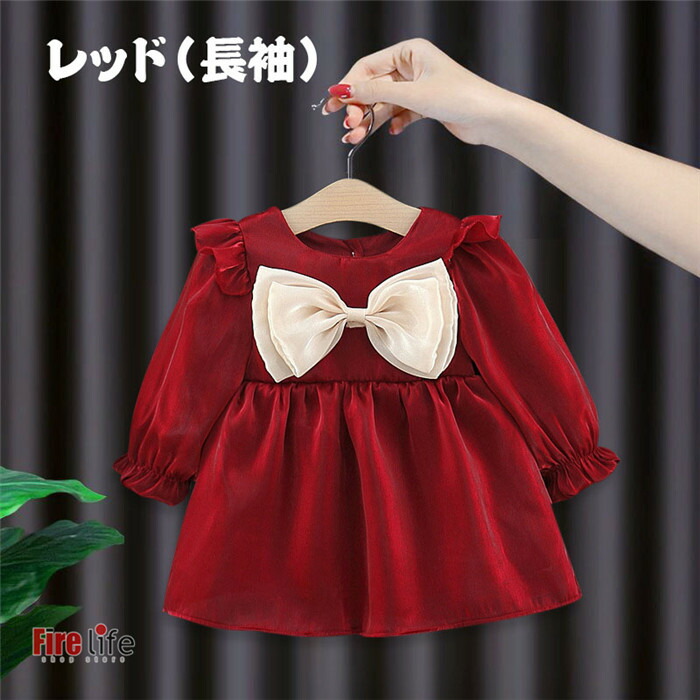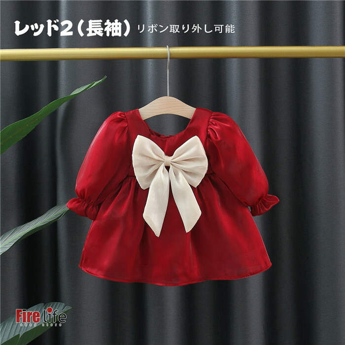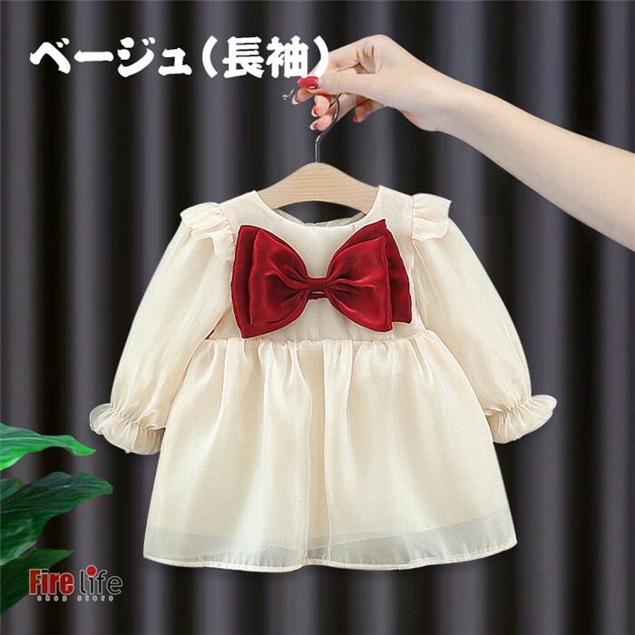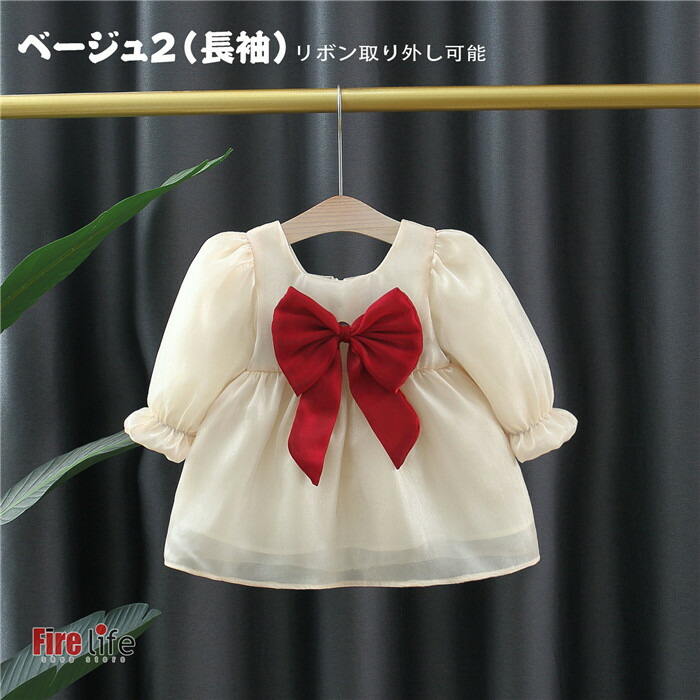 ベビー服 ワンピース リボン 女の子 キッズ ベビー マタニティ 早い者勝ち ベージュ(半袖) レッド(半袖) ベージュ(長袖) レッド(長袖) ベージュ2(長袖) レッド2(長袖) 73 80 90 100