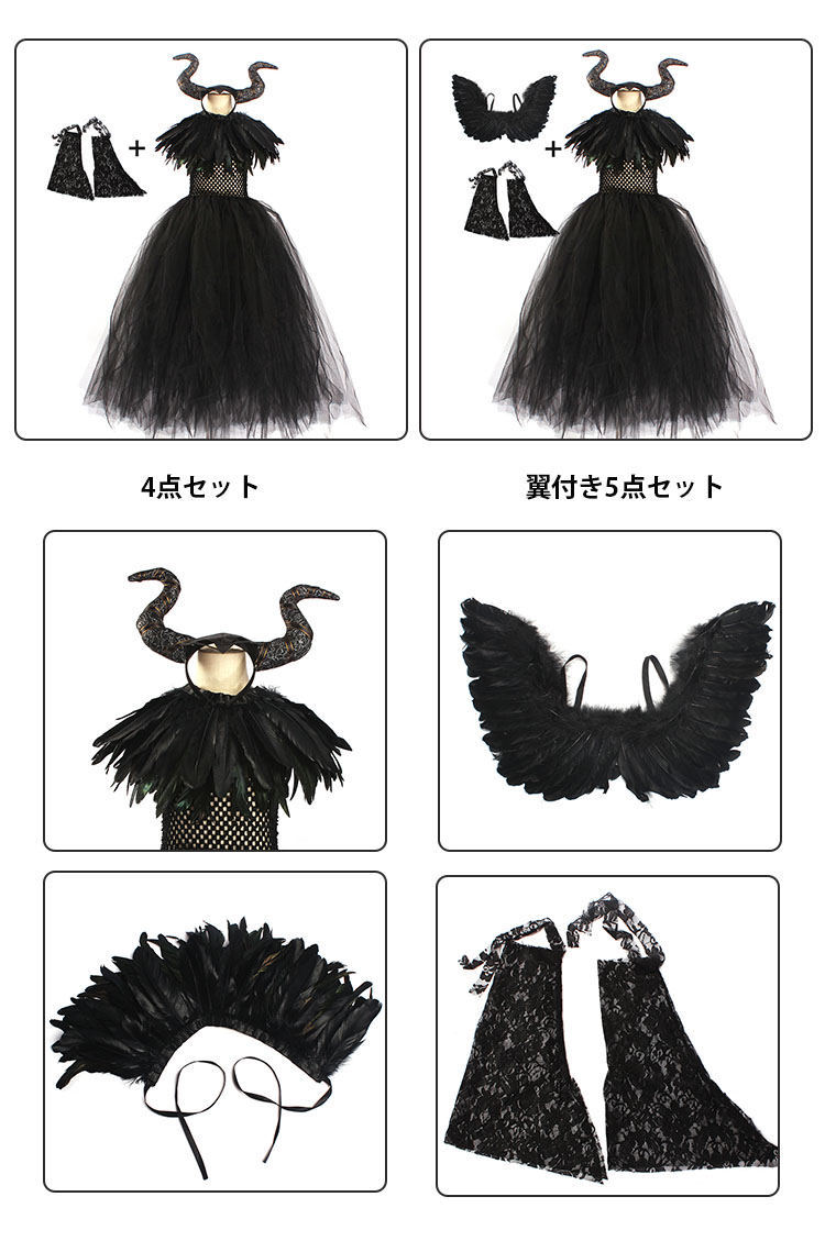 ハロウィン コスプレ 子供 ウイッチ コスプレ 変装 仮装 コスチューム一式 新登場! 4点セット 翼付き5点セット:3850円 S(2-3T) M(4-5Y) L(6-7Y) XL(8-10Y)
