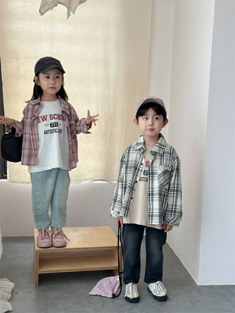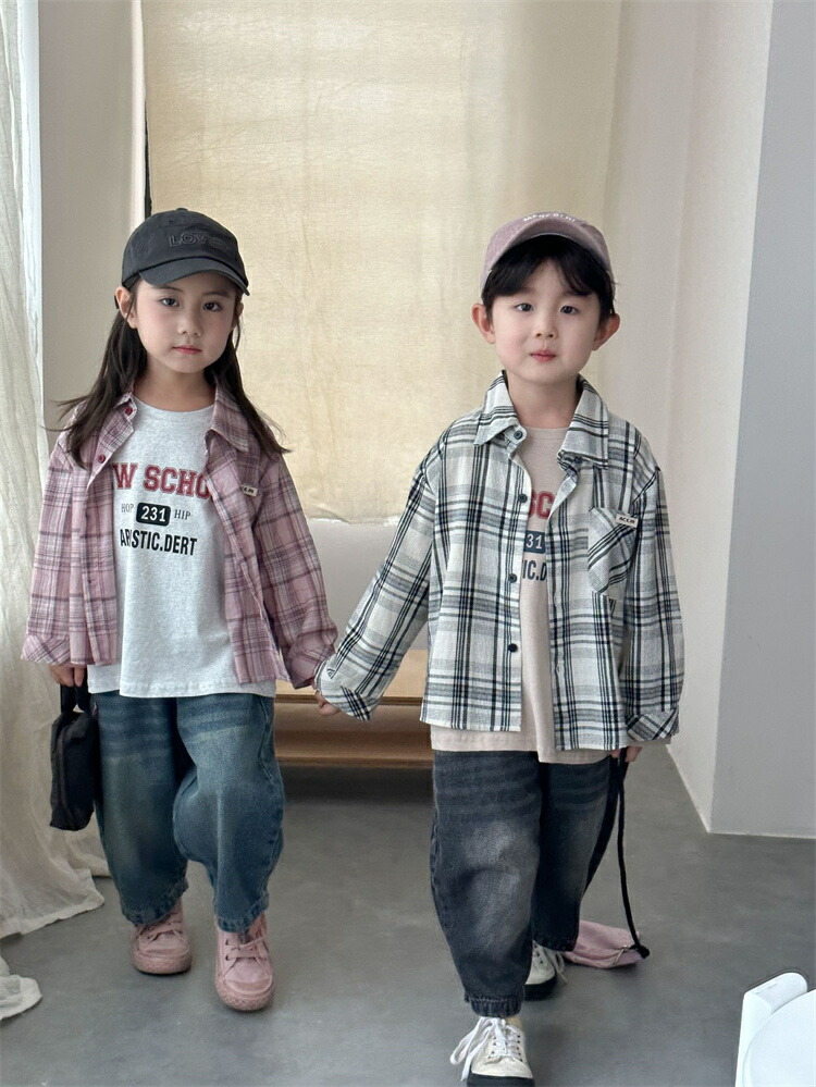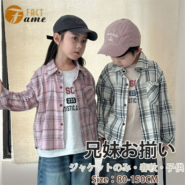 キッズ チェック 春秋 ペア 兄妹お揃 キッズ ベビー マタニティ 新登場! ピンク(女の子) 白黒(男の子) 80 90 100 110 120 130 140 150