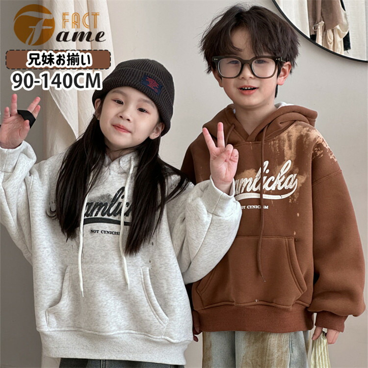 裏起毛 パーカー 兄妹お揃い 姉妹 兄 キッズ トップス パーカー 早い者勝ち グレー キャメル 90 100 110 120 130 140