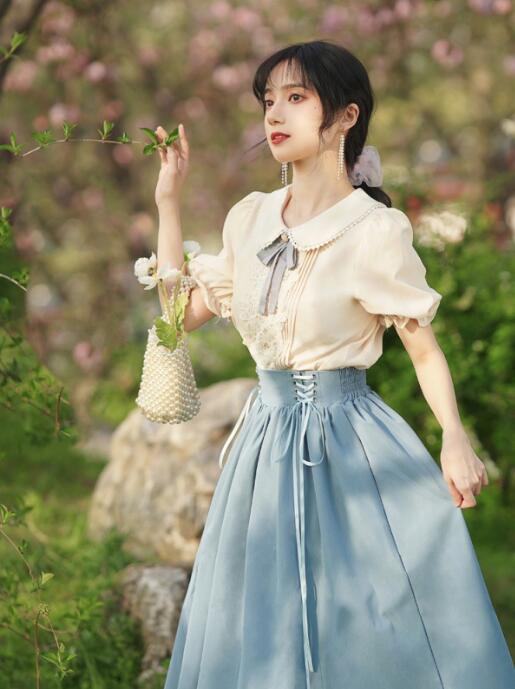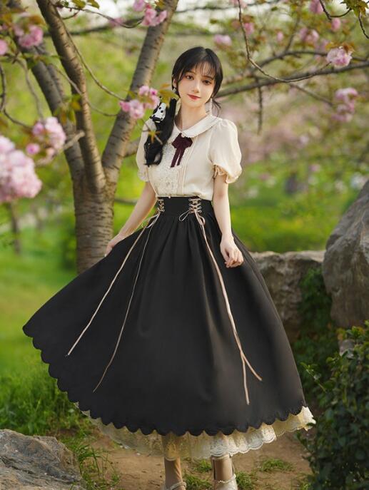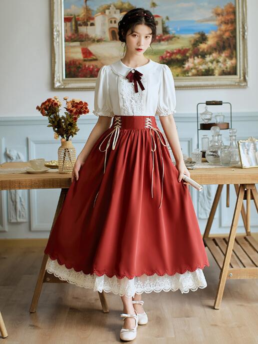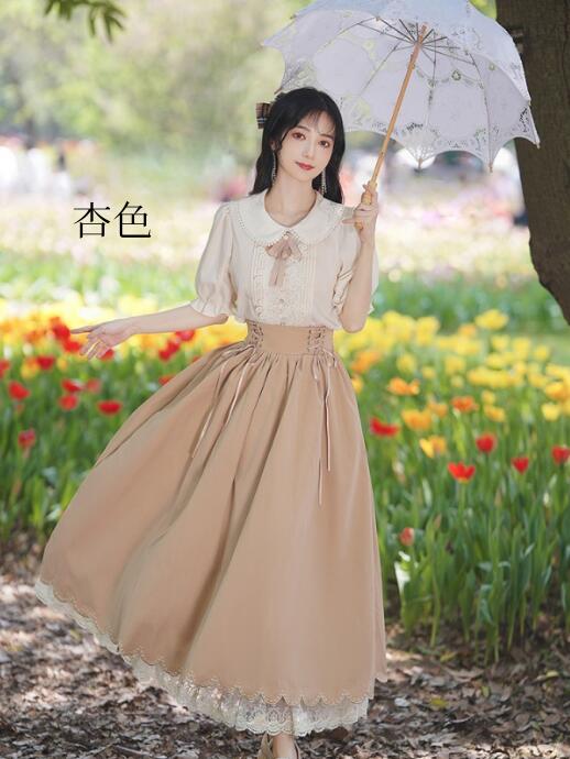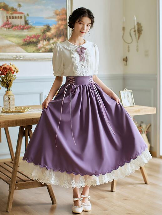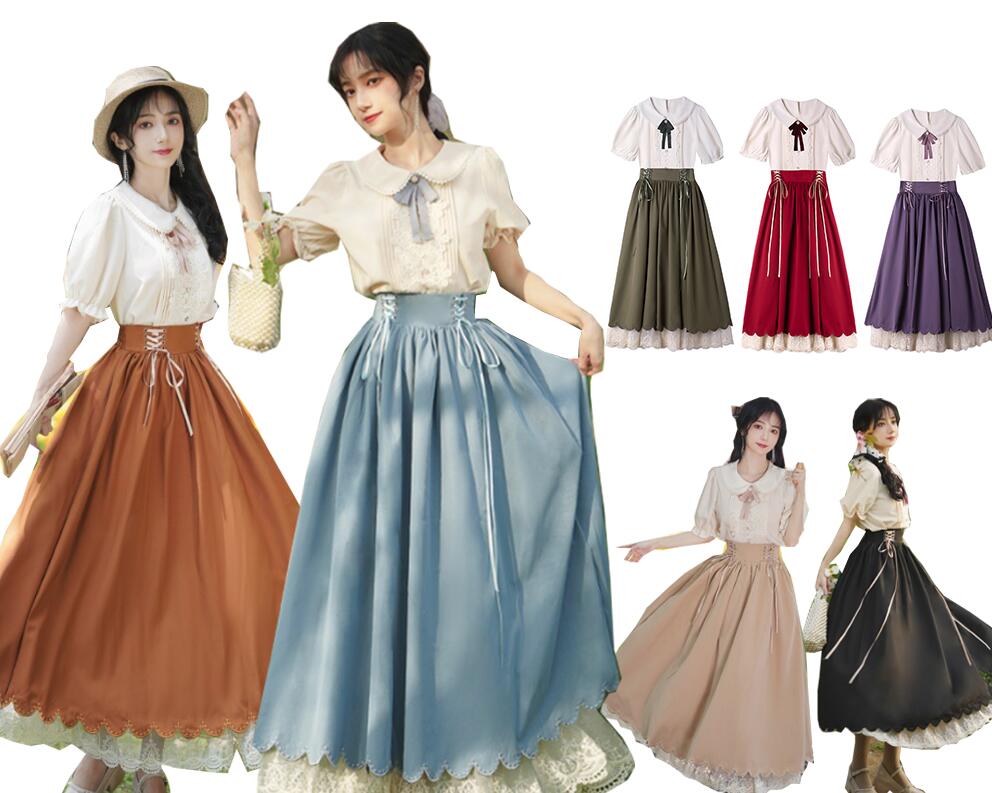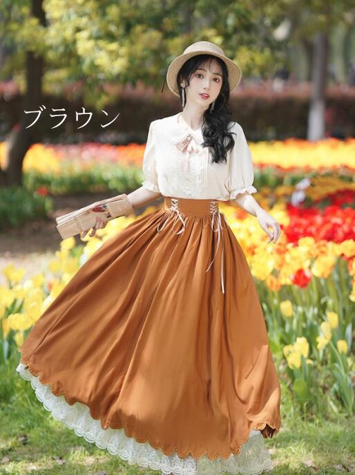 レトロワンピース 森ガール系 ブラウス ワンピース 新登場! XS S M L XL グリーン パープル ブラック 杏色 ブラウン レッド ブルー