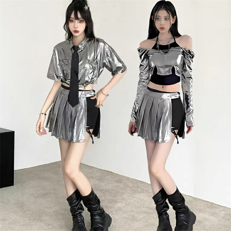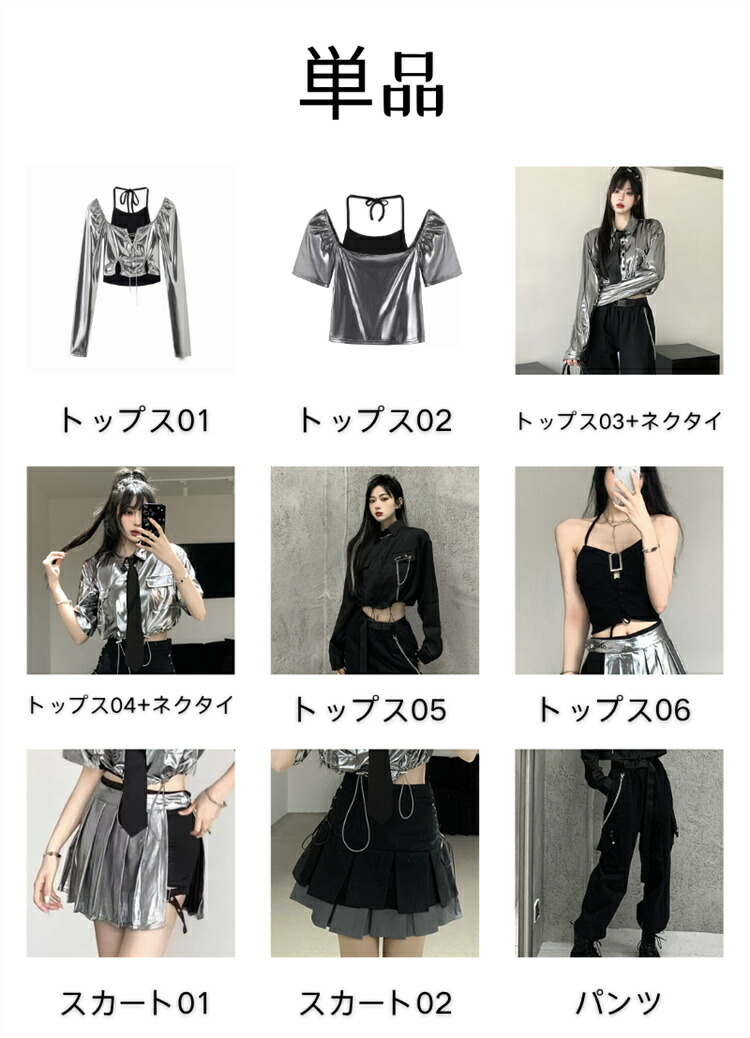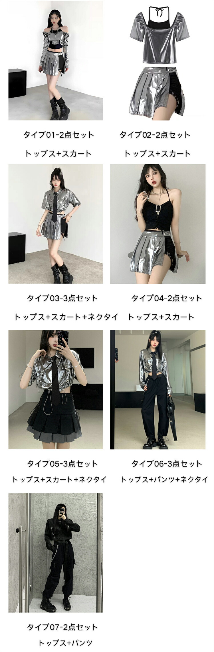 メタリック シルバー ダンス衣装 トッ スーツ セットアップ パンツスーツ 特集 S M L XL 2XL タイプ01-2点セット タイプ02-2点セット タイプ03-3点セット タイプ04-2点セット タイプ05-3点セット タイプ06-3点セット タイプ07-2点セット トップス01 トップス02 トップス03+ネクタイ トップス04+ネクタイ トップス06 トップス05 スカート01 スカート02 パンツ